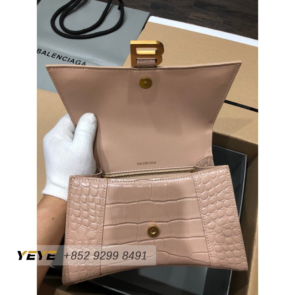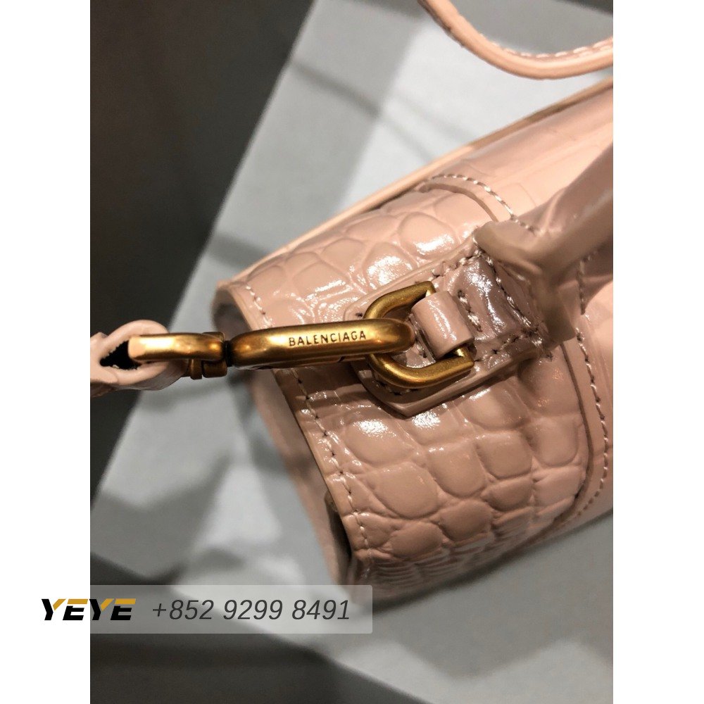 Balenciaga Hourglass Small Handbag Crocodile Embossed In Nude 6310