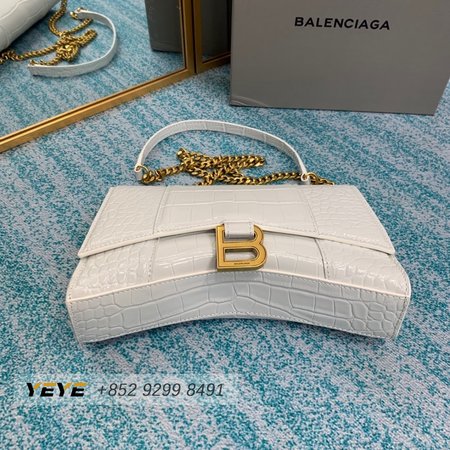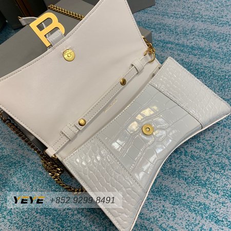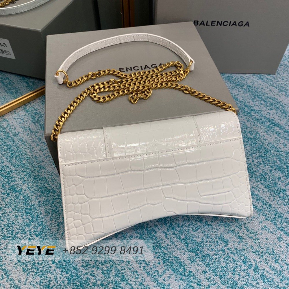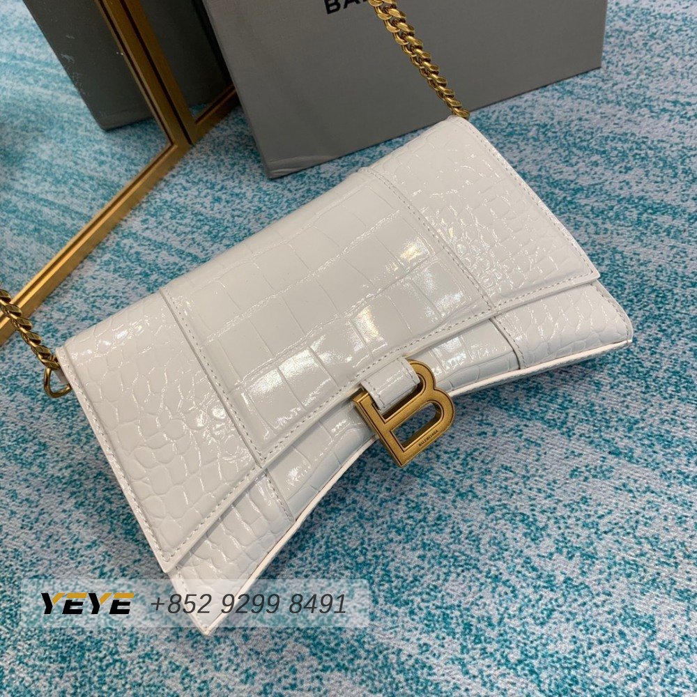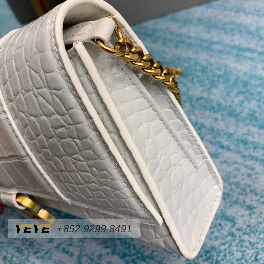 Balenciaga Hourglass Wallet On Chain Crocodile Embossed In White 9016