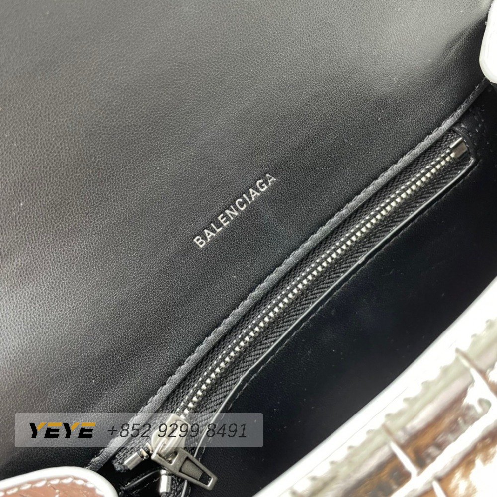 Balenciaga Metallic Shiny Calfskin Crocodile Embossed Hourglass Top Handle Bag