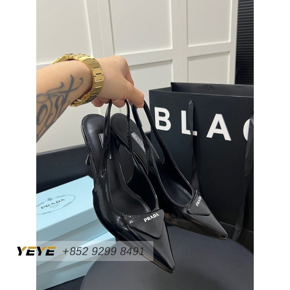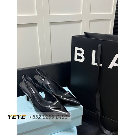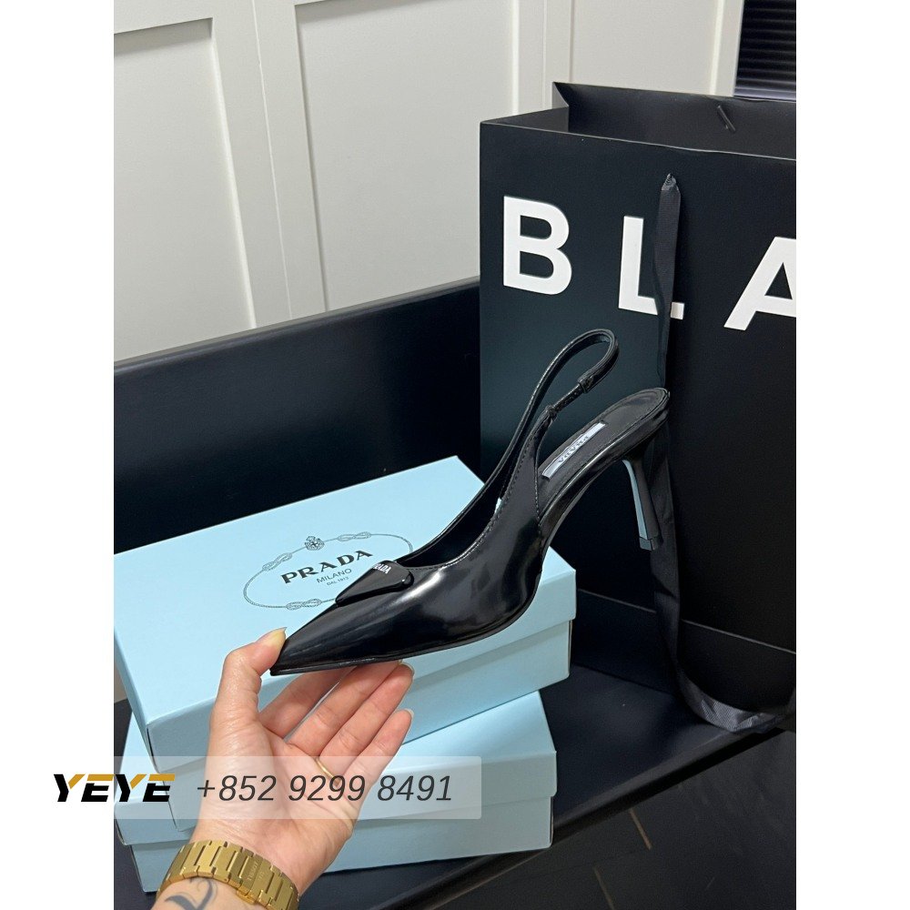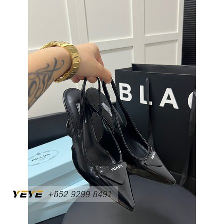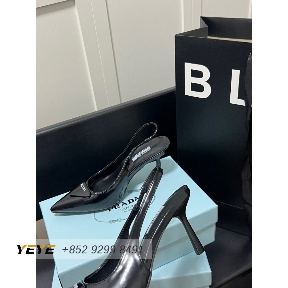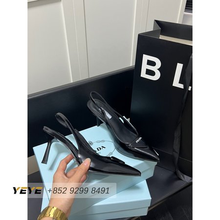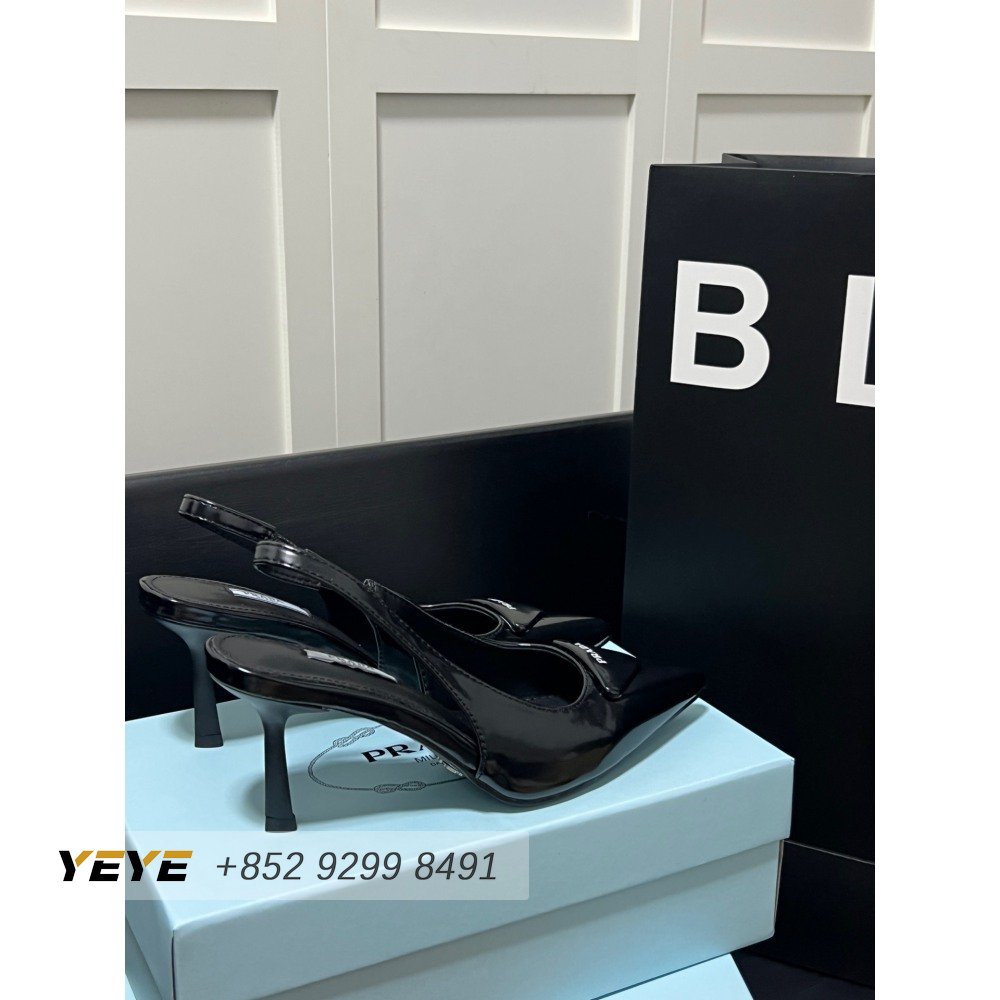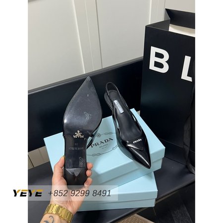 Prada Brushed Leather Slingback Pumps Black 35-40
