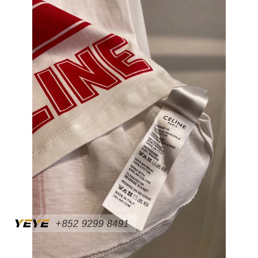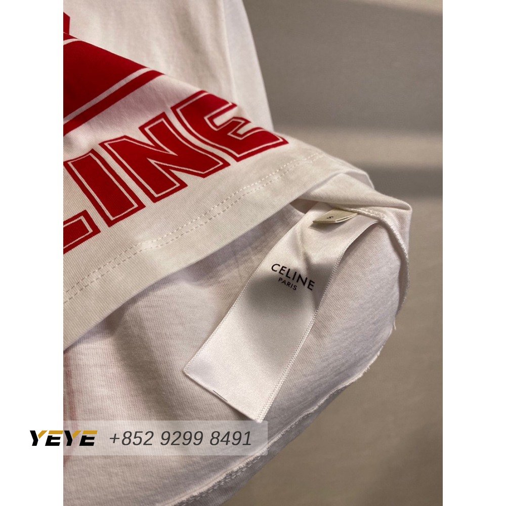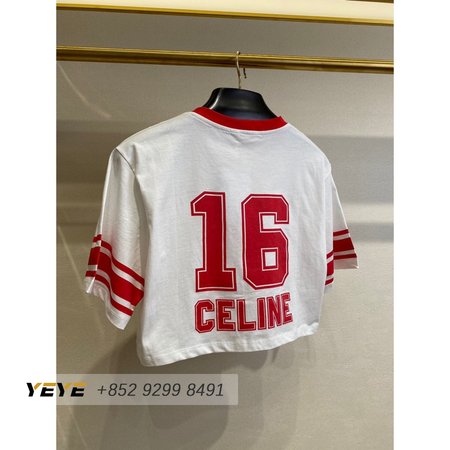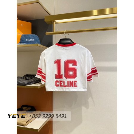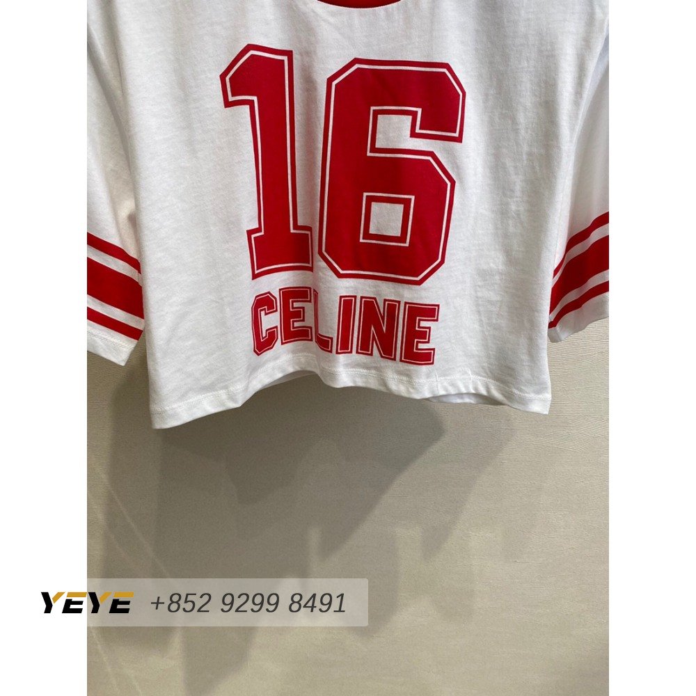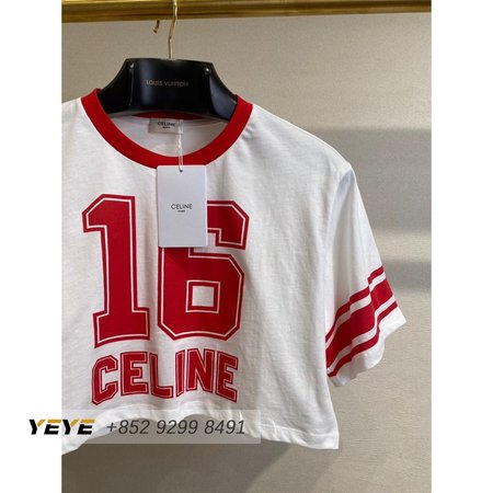 Celine 16 Cropped T-Shirt In Cotton Jersey Off White/Red Intense