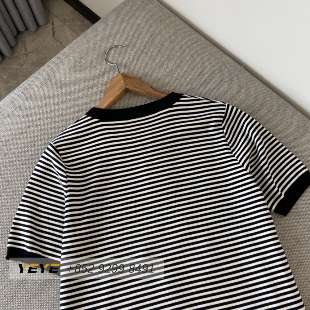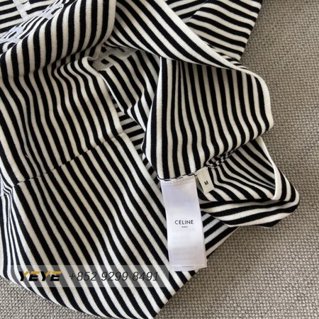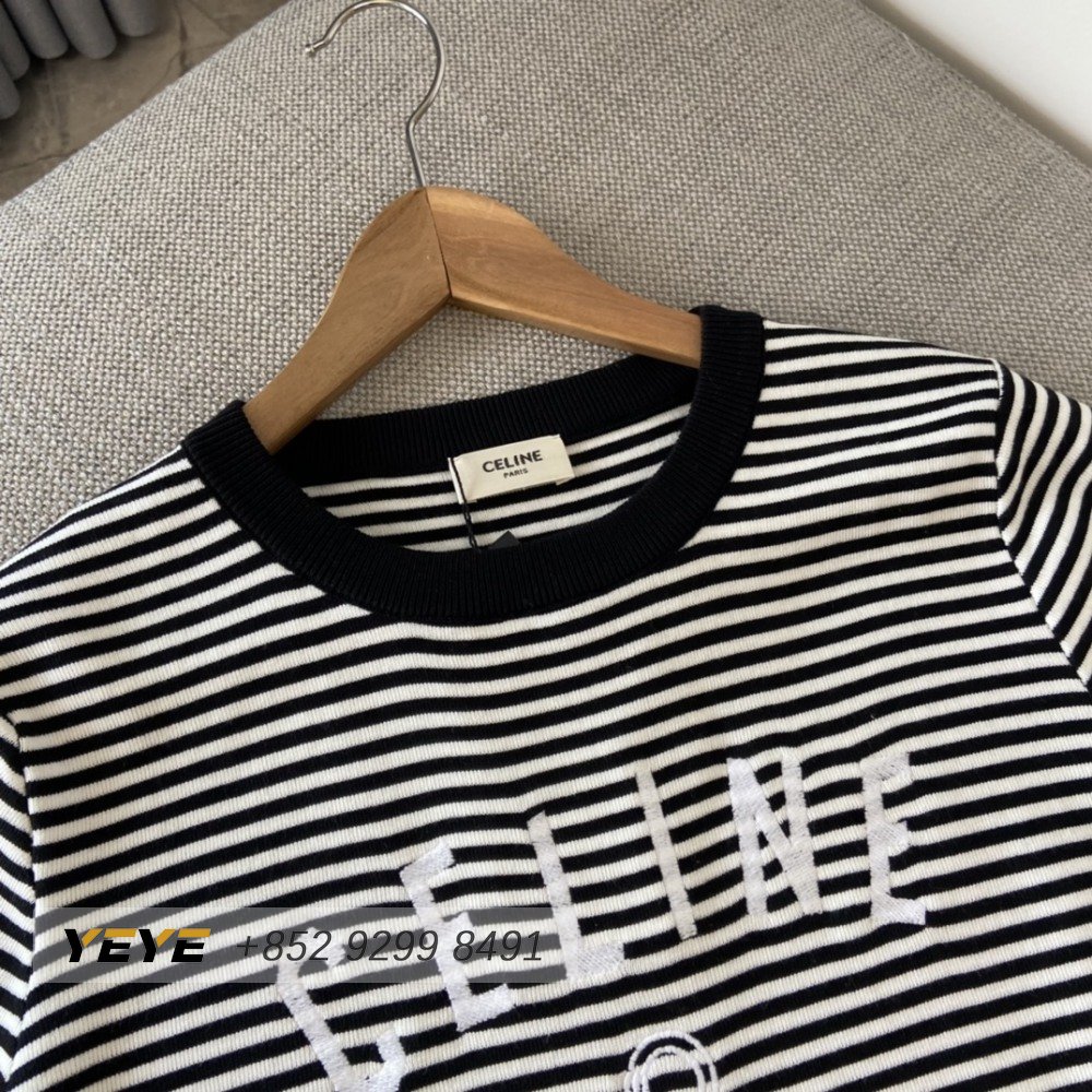Celine Anchor Striped Jersey 70s Style T-Shirt Fluorescent White/Black