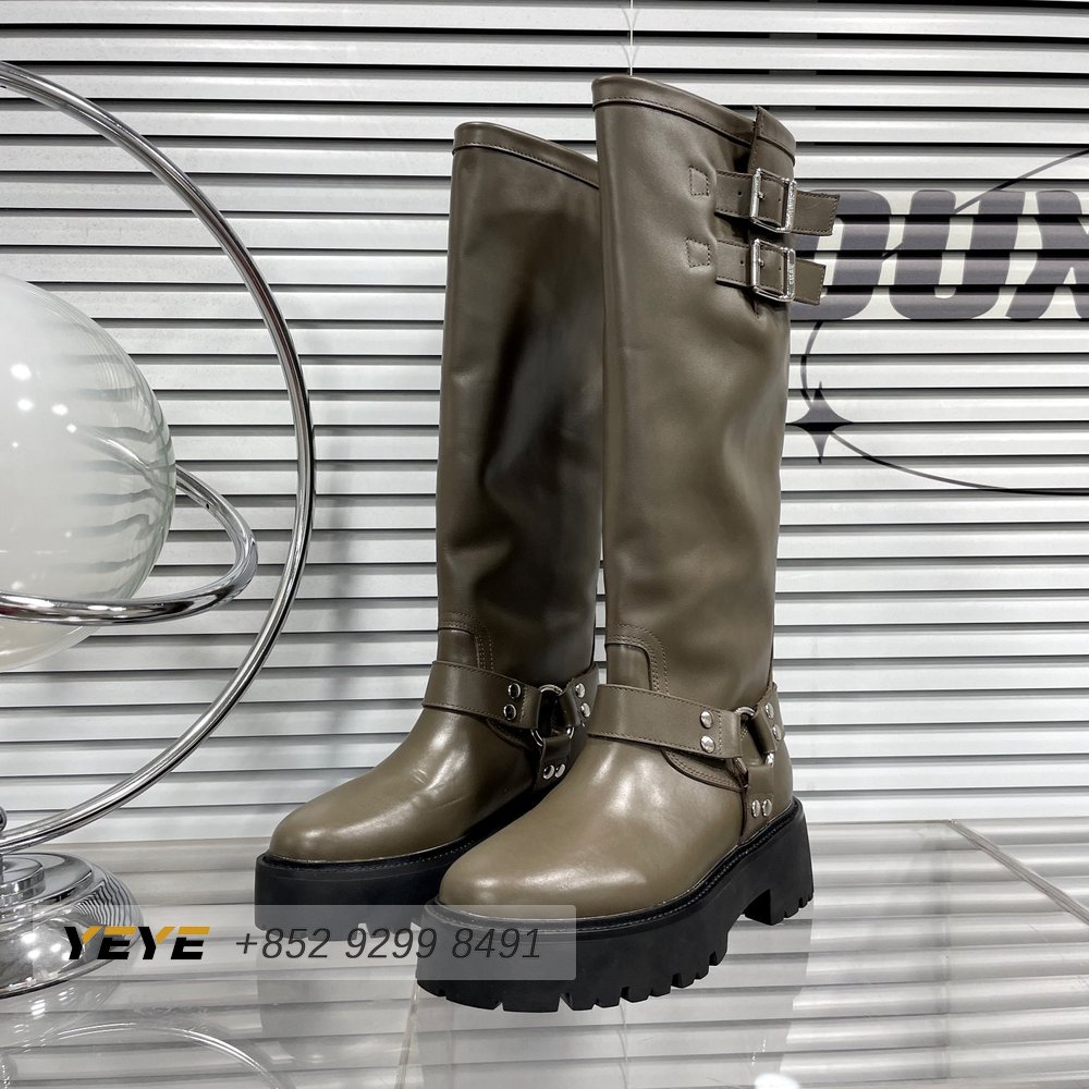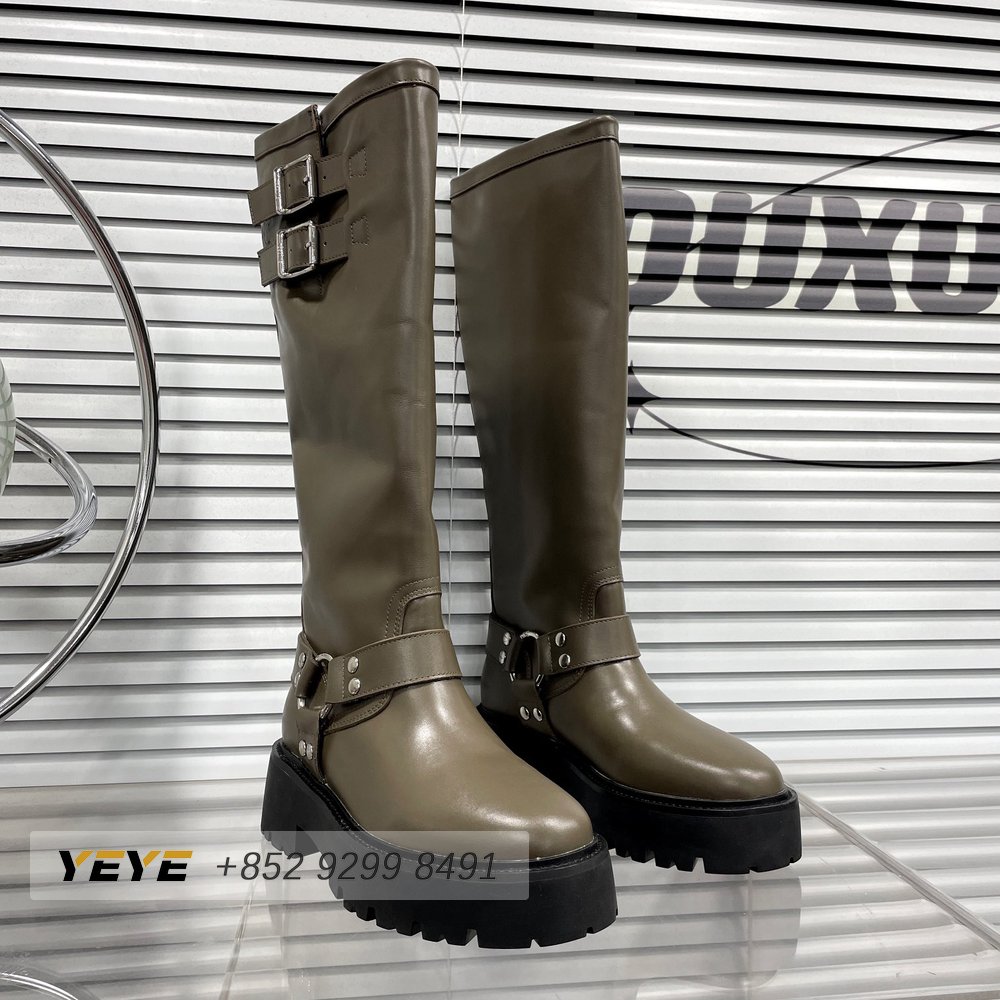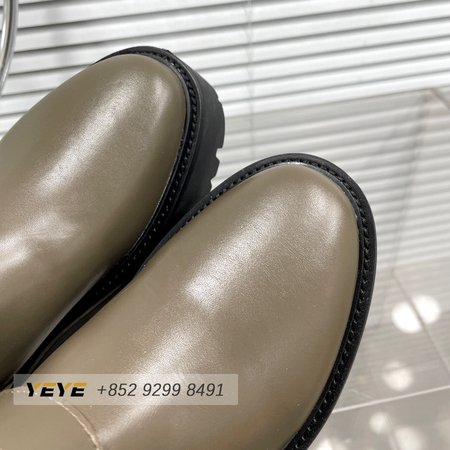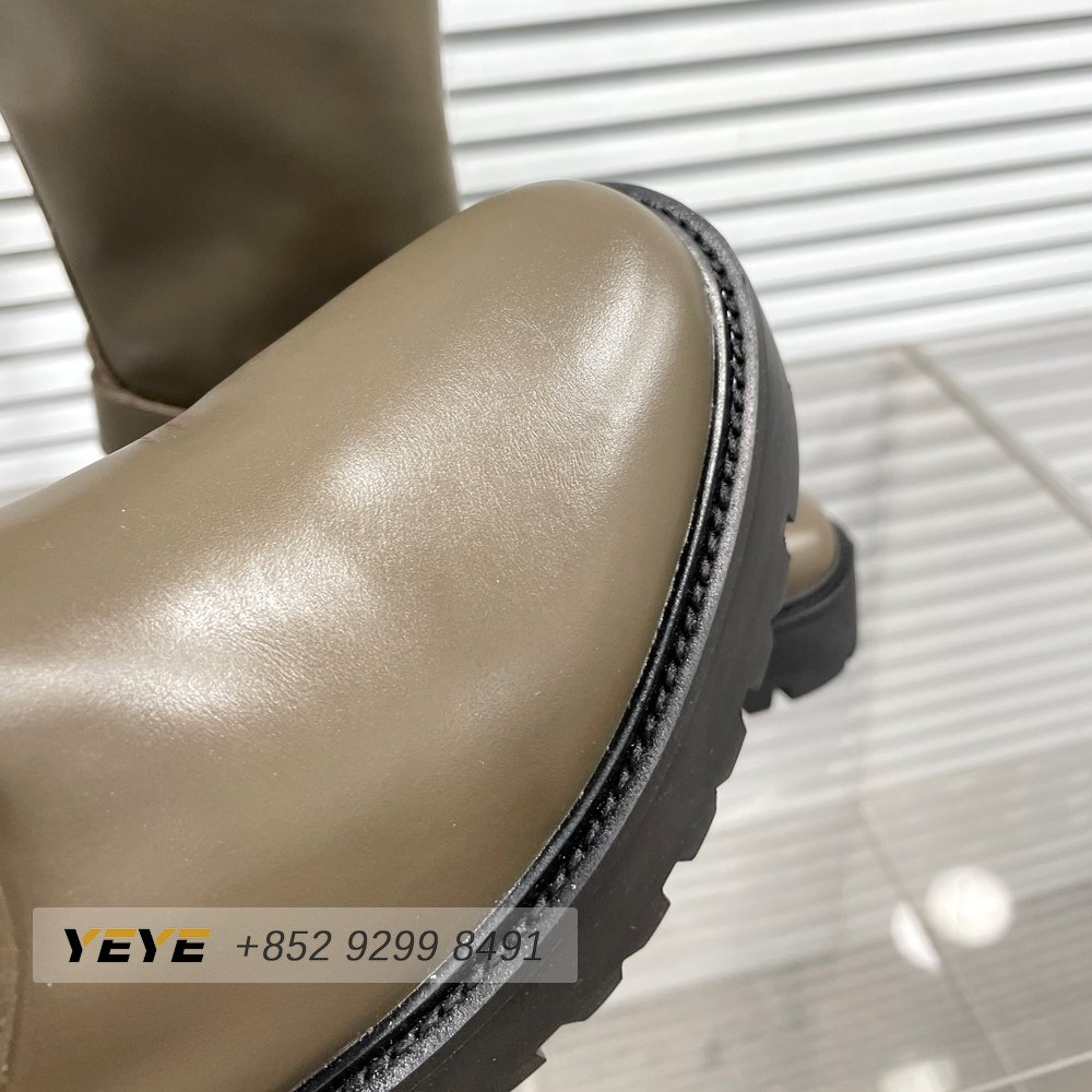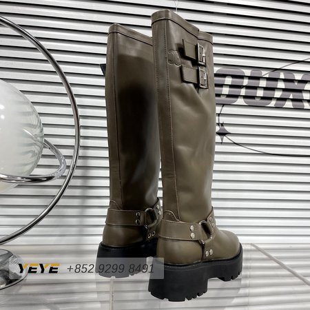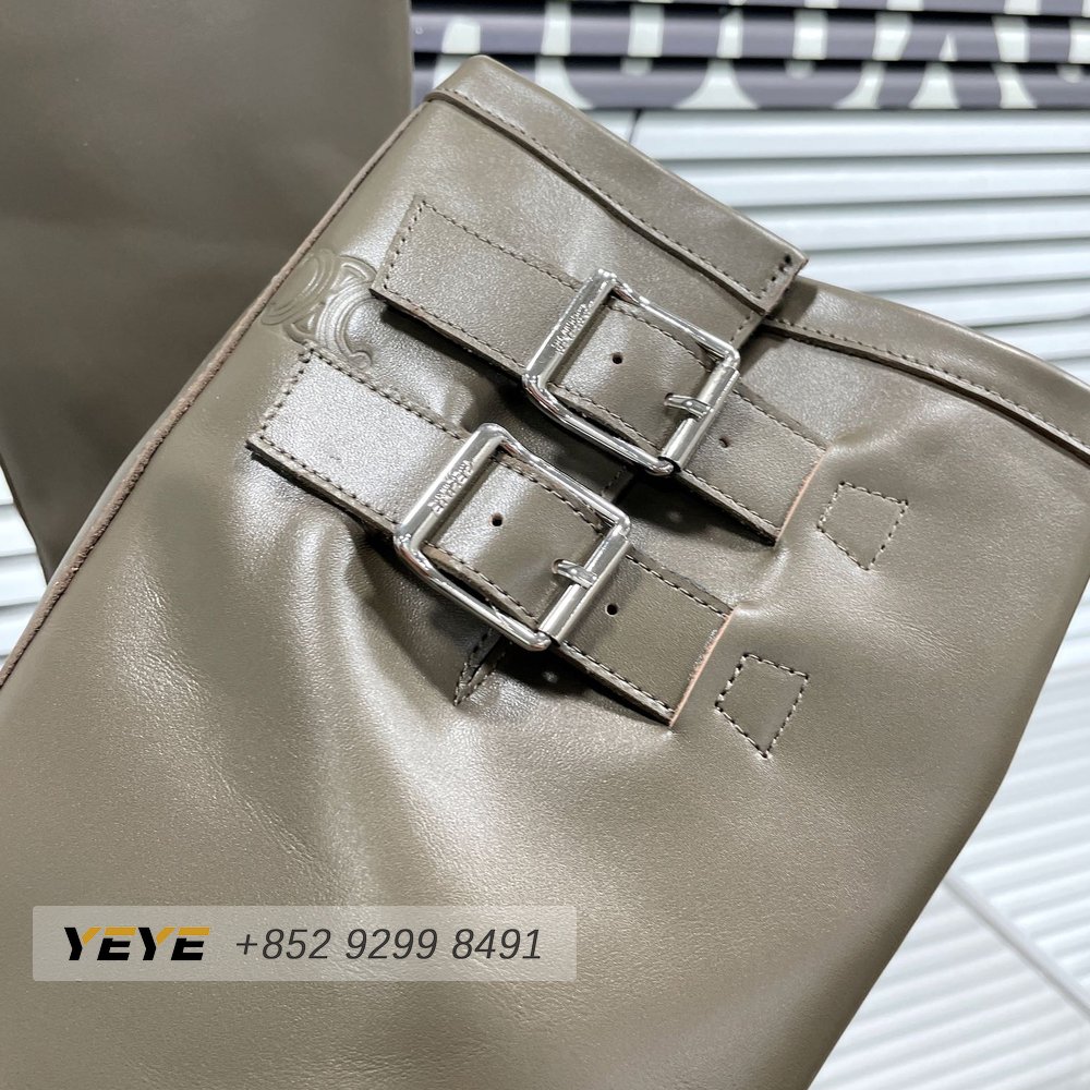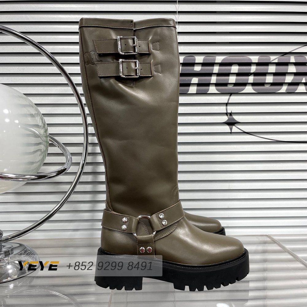 Celine Bulky Biker High Boot In Calfskin Khaki/Silver