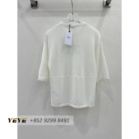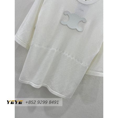 Celine Triomphe Perforated T-Shirt In Plonge Lambskin Optic White