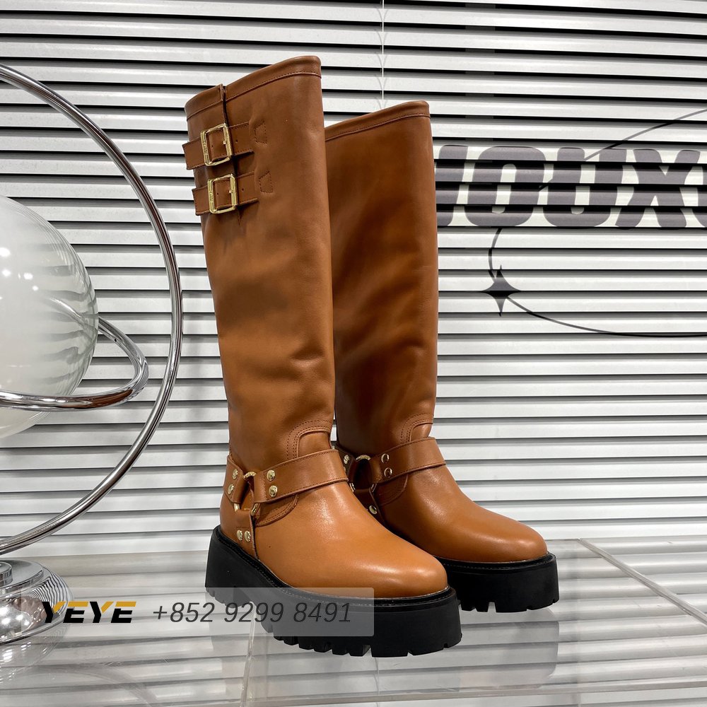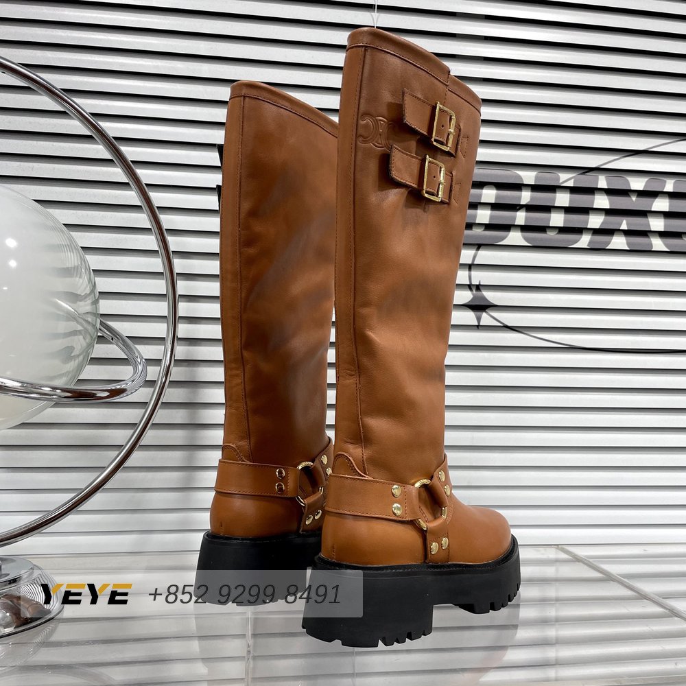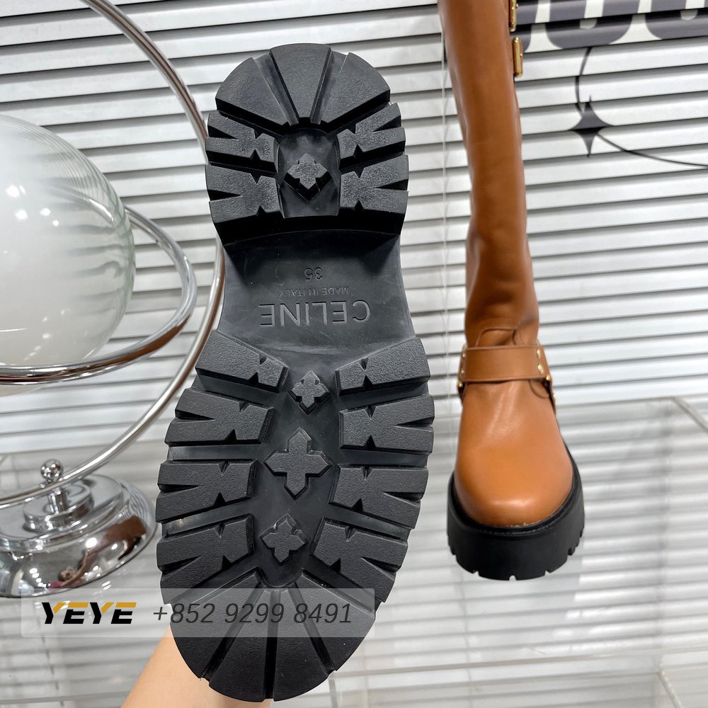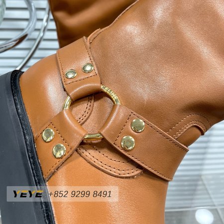 Celine Bulky Biker High Boot In Calfskin Khaki/Silver