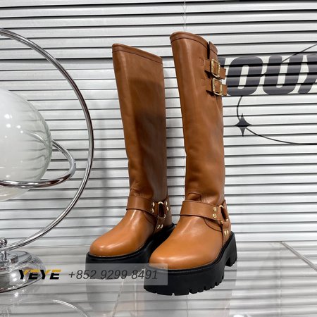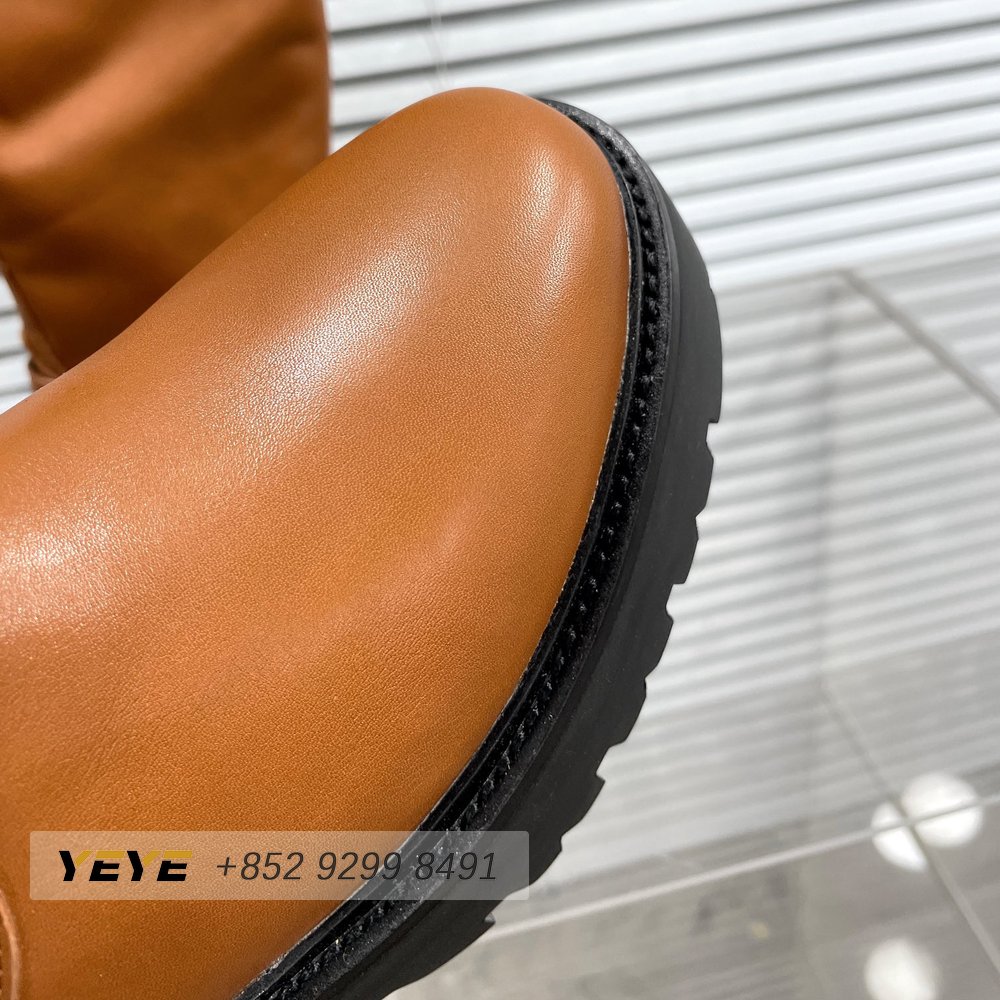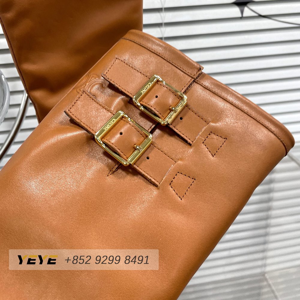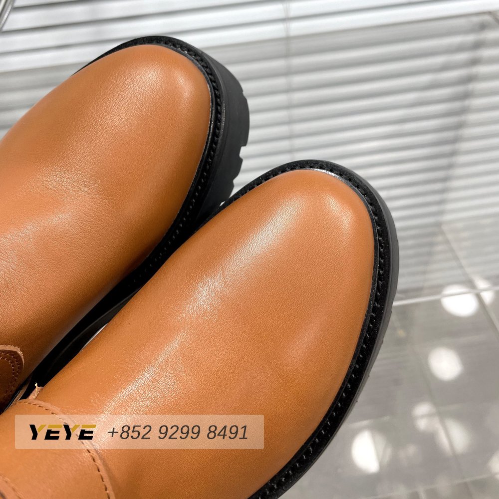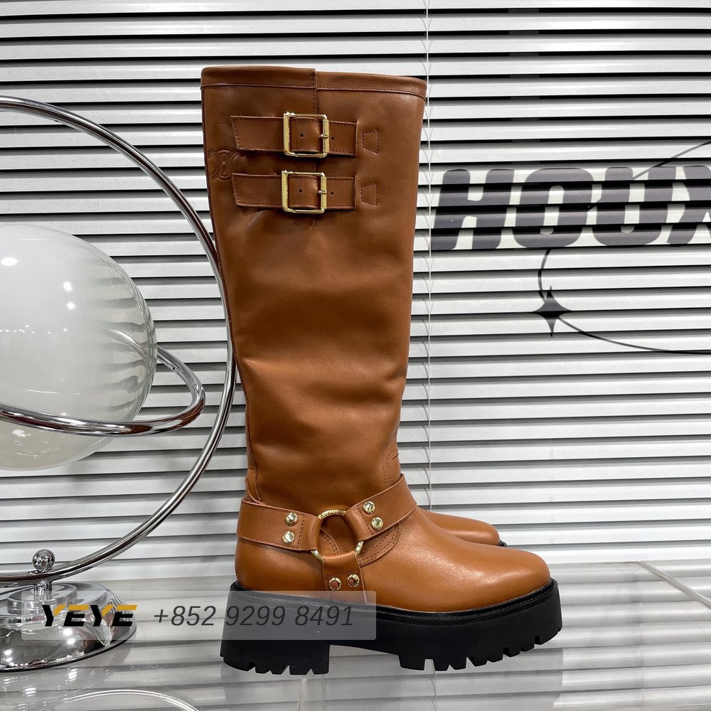 Celine Bulky Biker High Boot In Calfskin Khaki/Silver
