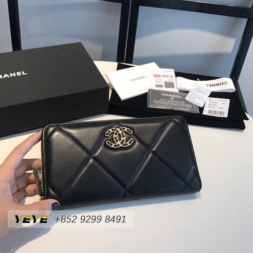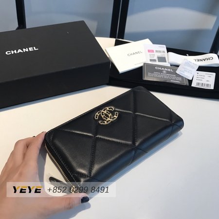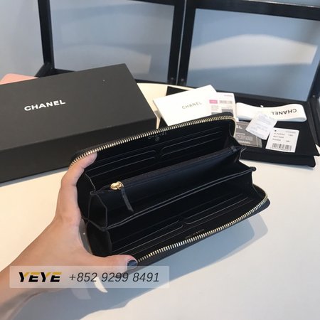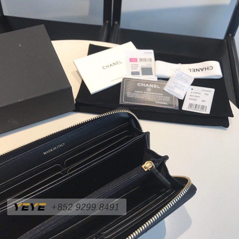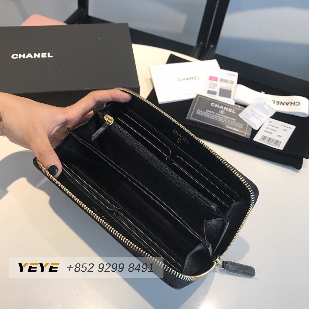 Chanel Zip Coin Purse Quilted Caviar Gold-tone Black