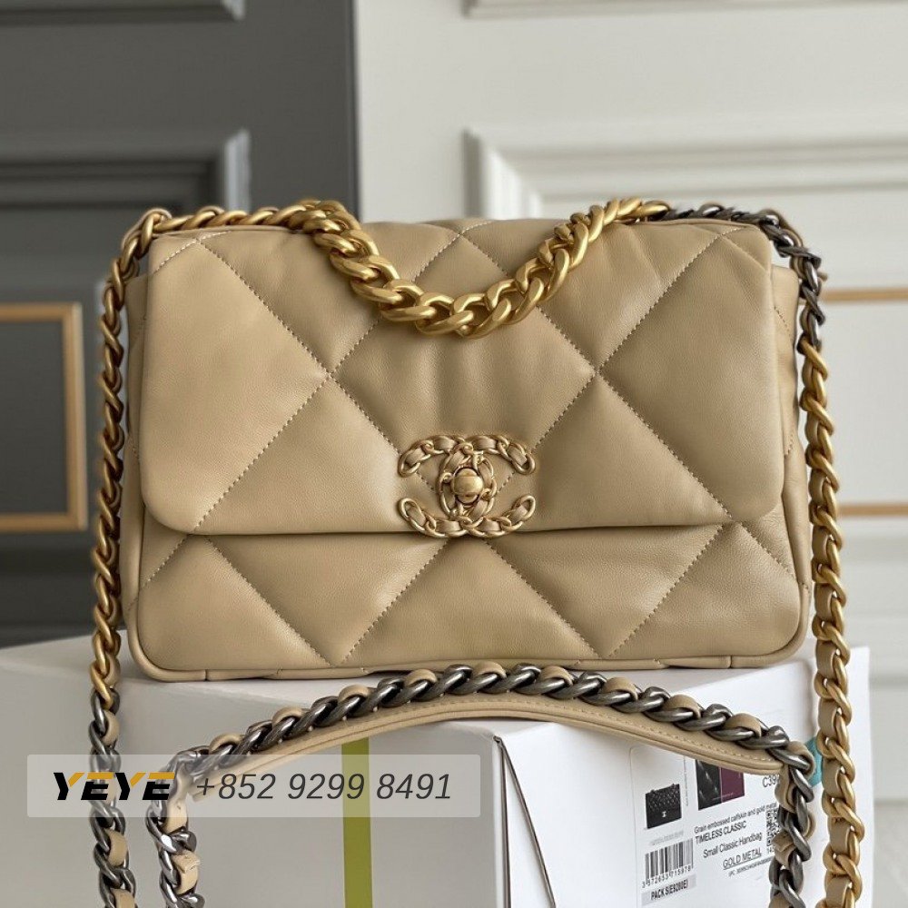Chanel 19 Small Flap Bag in Light Beige Lambskin