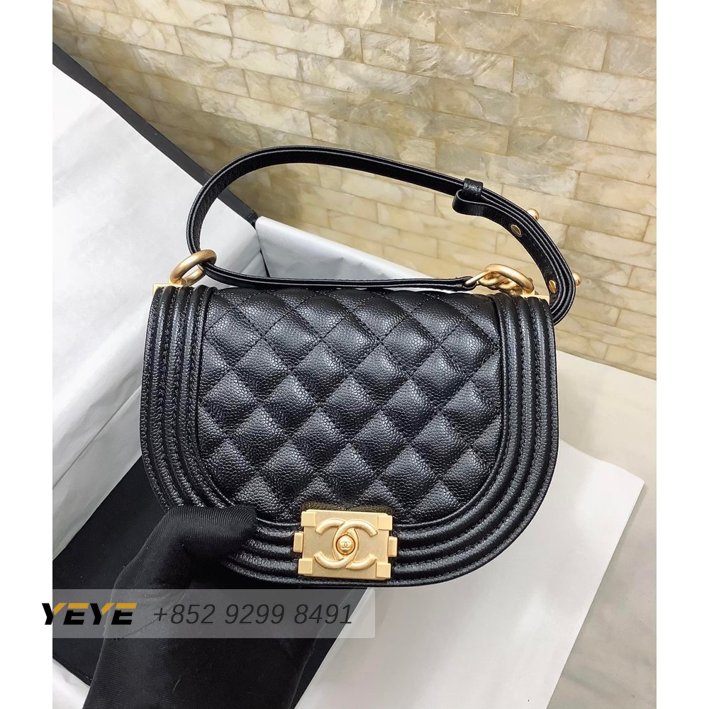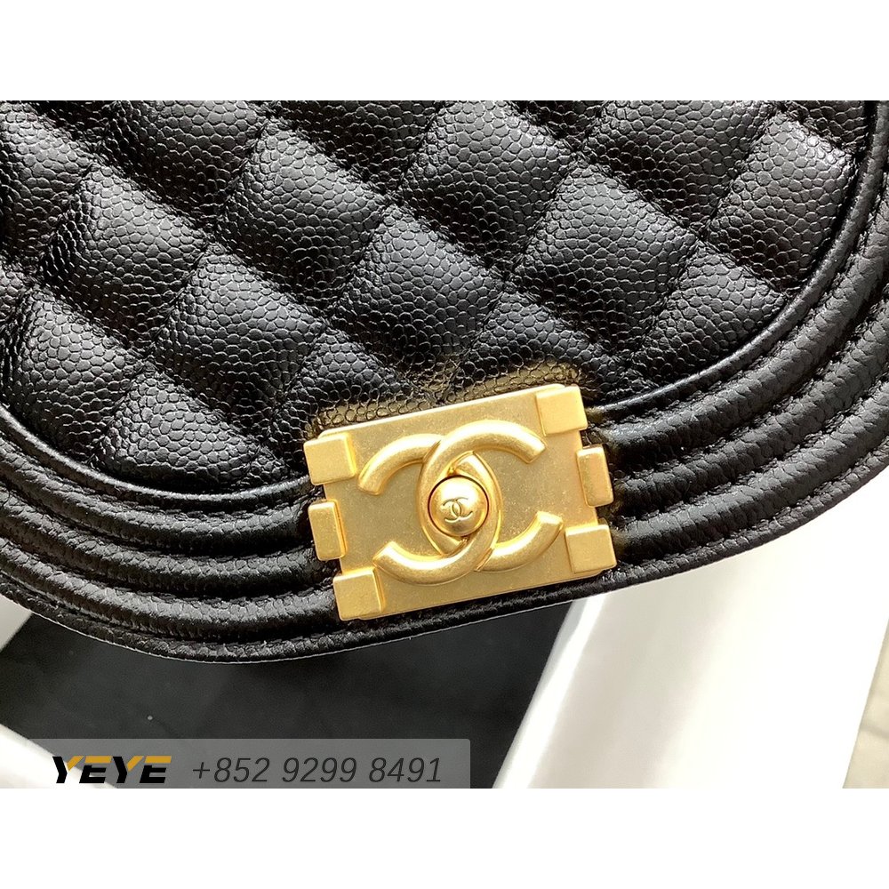 Chanel Caviar Quilted Round Filigree Crossbody Beige Black