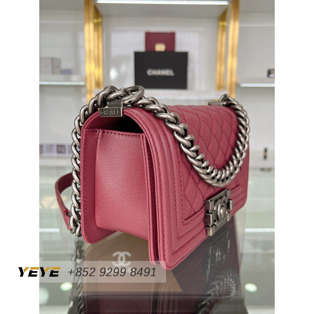 Chanel Boy Flap Quilted Diamond New Medium Red