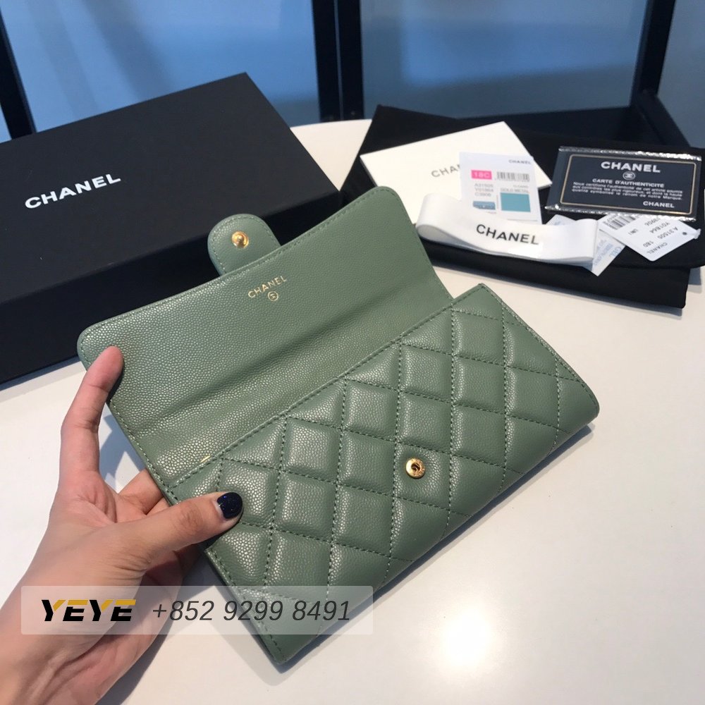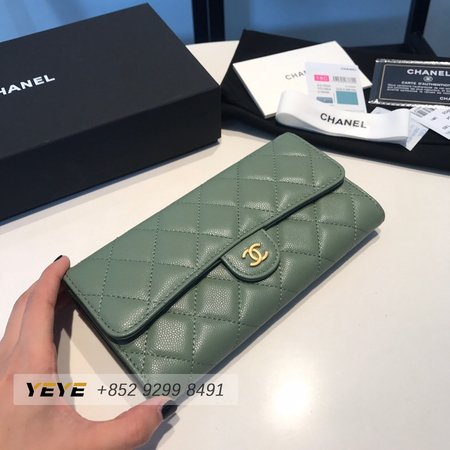 Chanel Card Holder Quilted Caviar Gold-tone Black