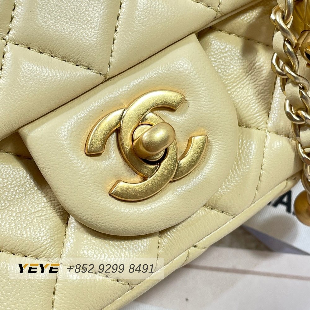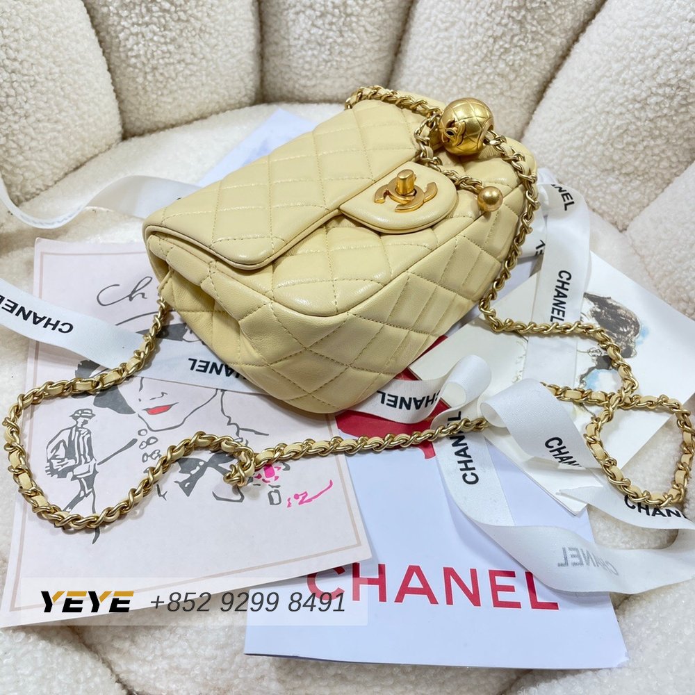 Chanel Yellow Tweed And Leather Double Flap Bag