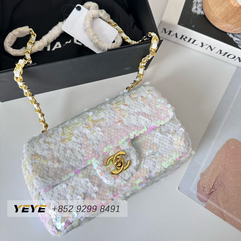Chanel Classic Handbag Pearly Lambskin & Black-tone Metal Black