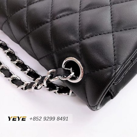Chanel Classic Double Flap Quilted Caviar Silver-tone Medium Black