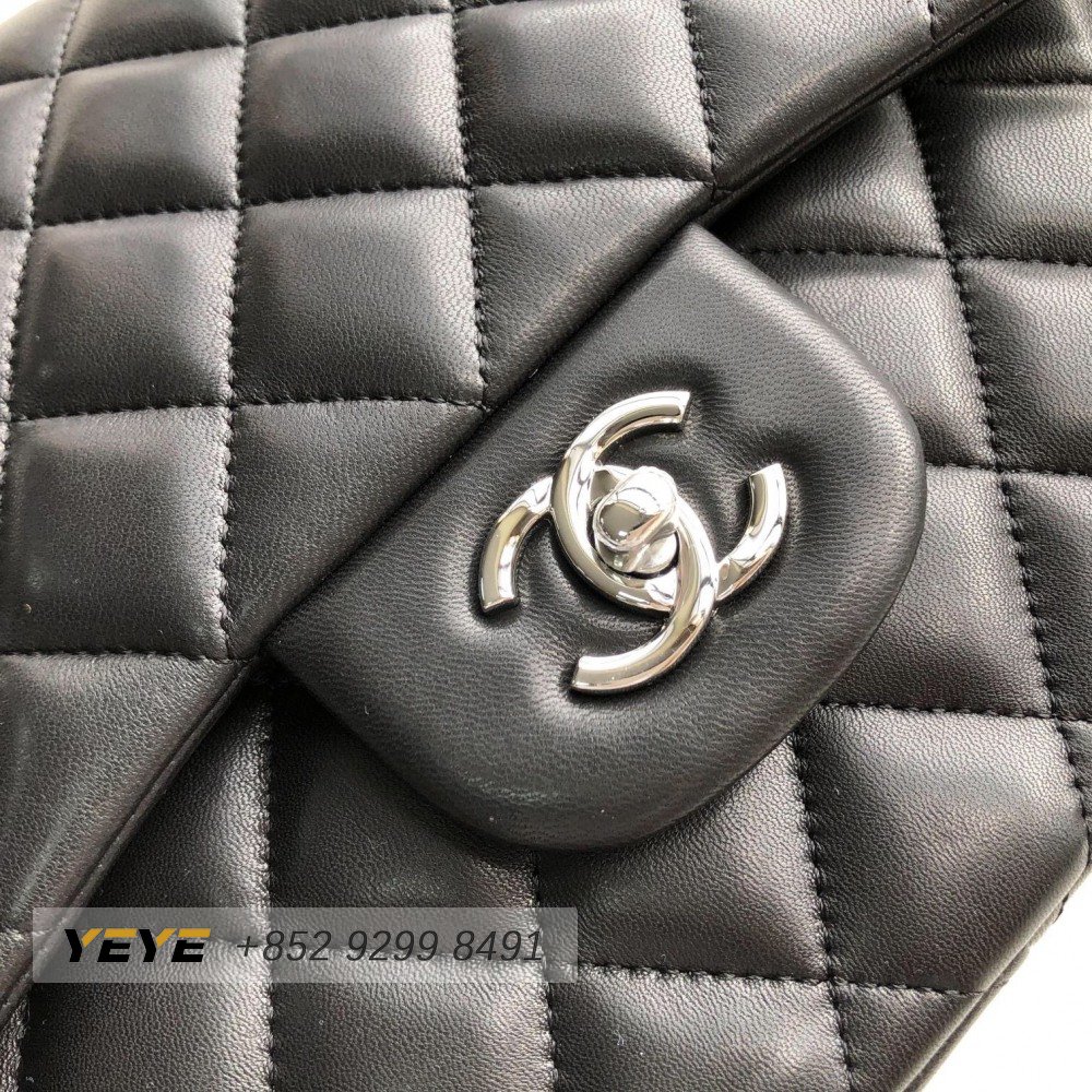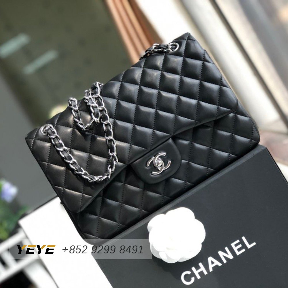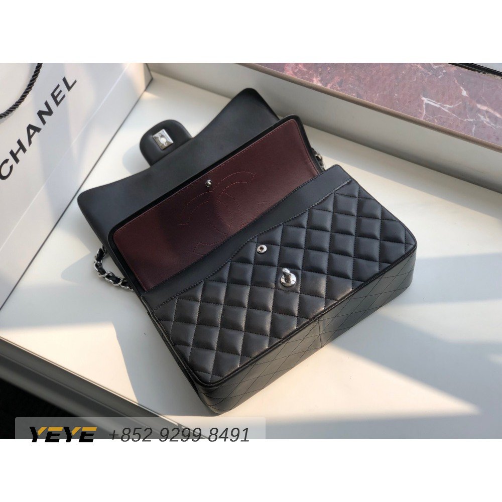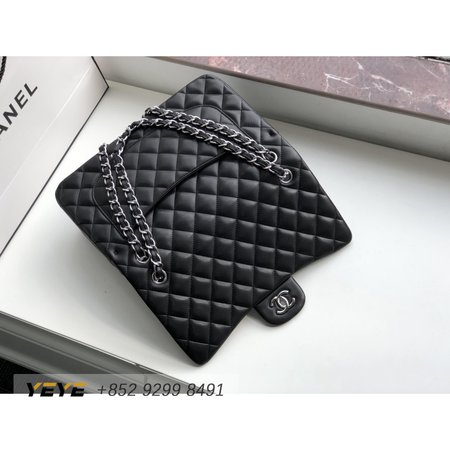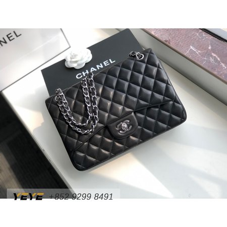 Chanel Classic Double Flap Quilted Lambskin Silver-tone Jumbo Black