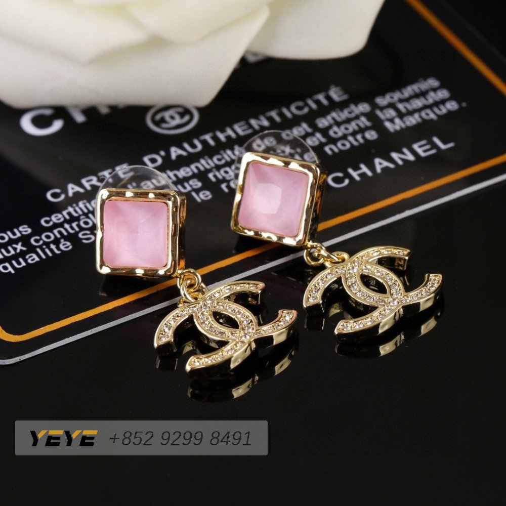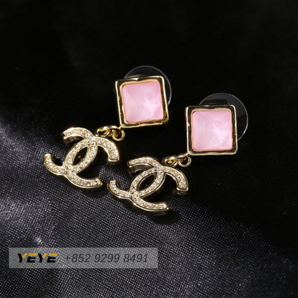 Chanel Crystal CC Drop Earrings Pink Gold