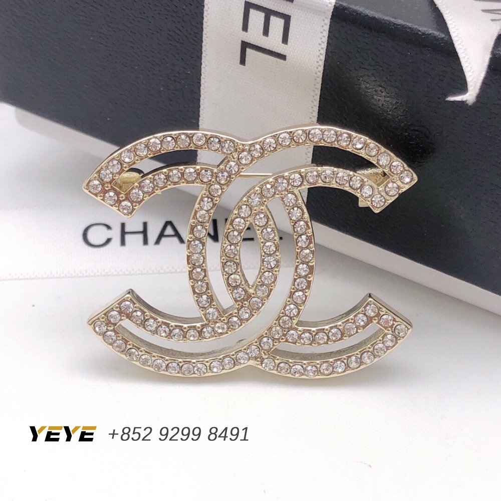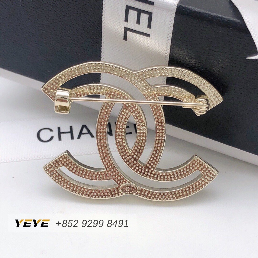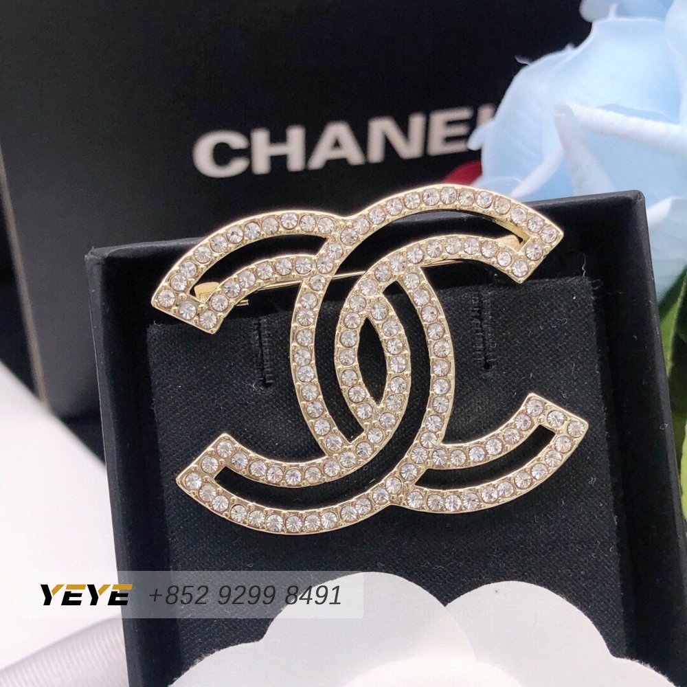 Chanel Crystal Pearl Multi Strand Chain CC Brooch Gold