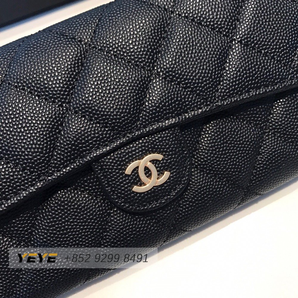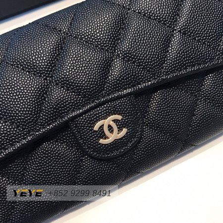 Chanel Zip Coin Purse Quilted Caviar Gold-tone Black