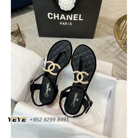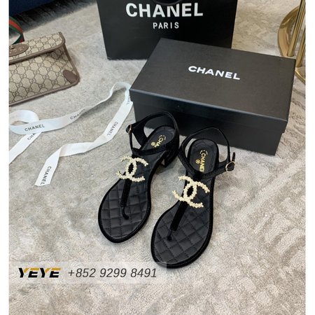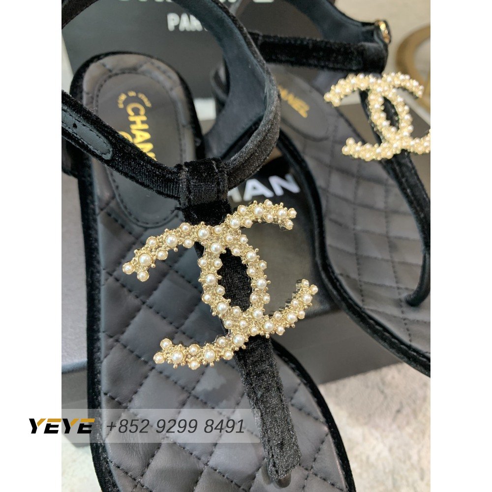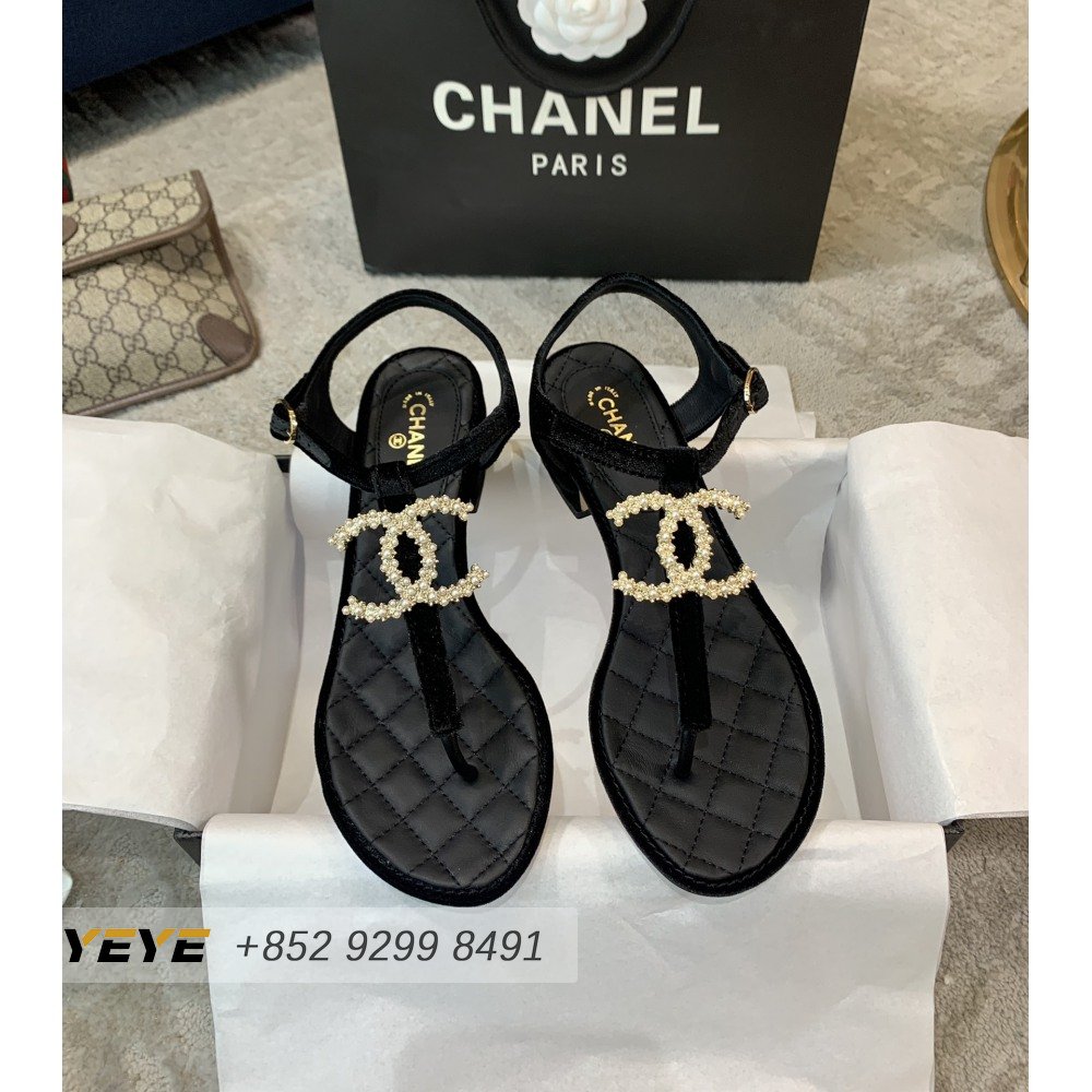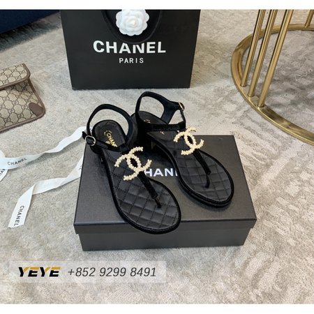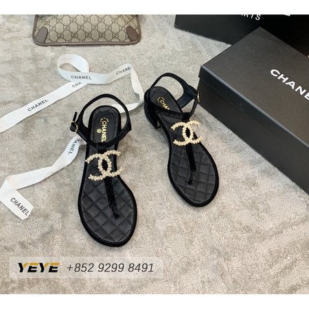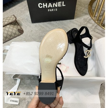 Chanel Gingham Open Toe Rubber Sole Casual Style Tweed