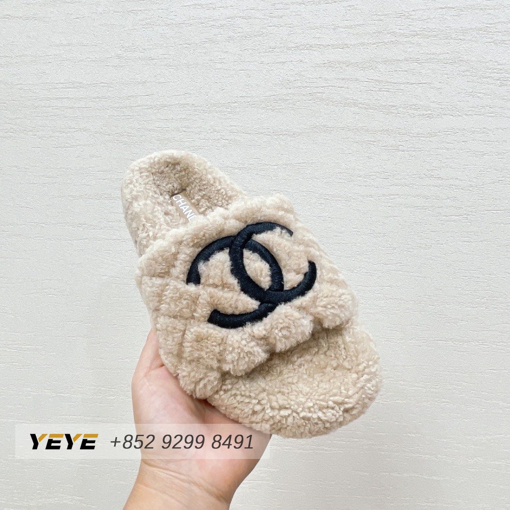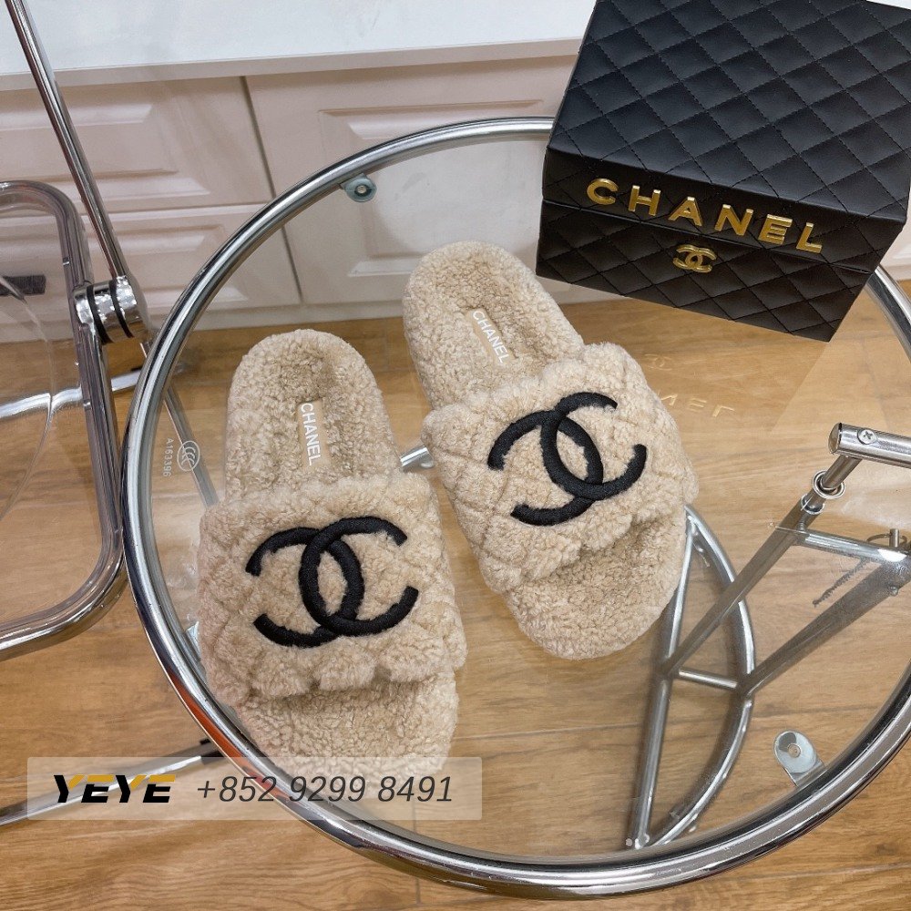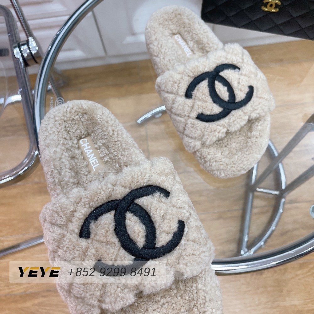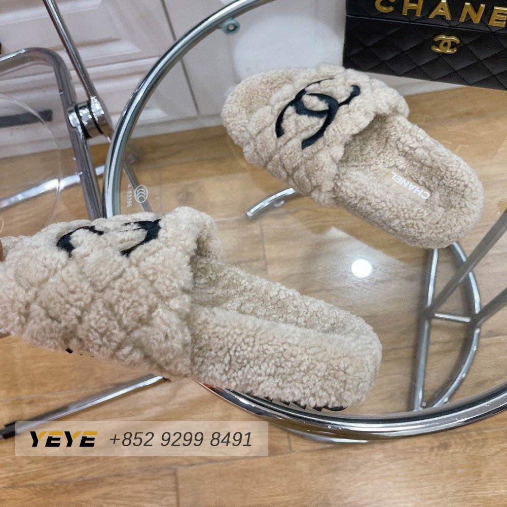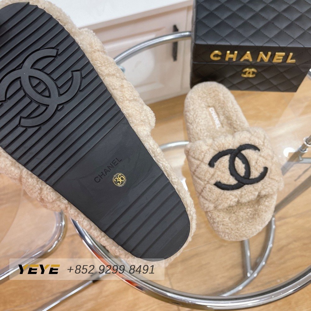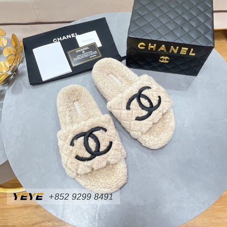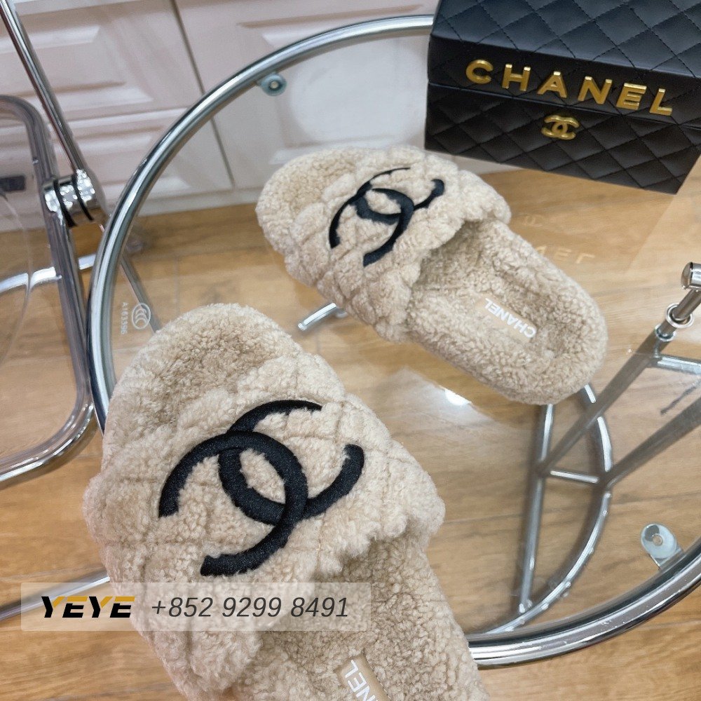 Chanel Women's Cross Band Slippers Fuzzy Slippers