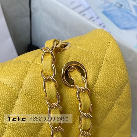 Chanel Medium Classic Double Flap Bag Yellow Caviar Light Gold Hardware