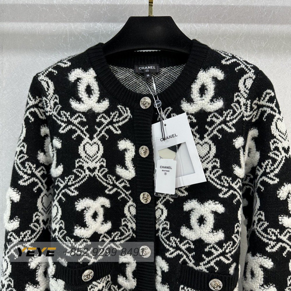 Chanel Color Contrast Rotator Knitted Long Sleeve