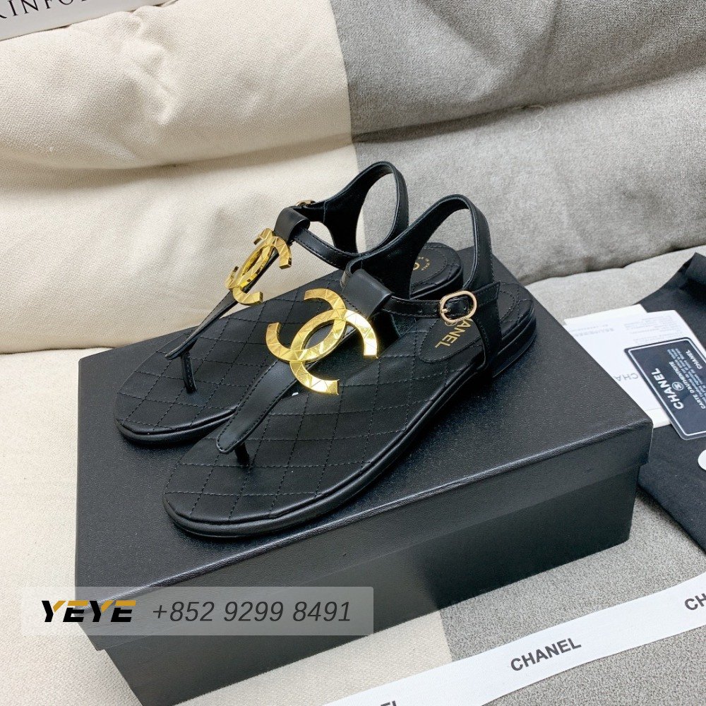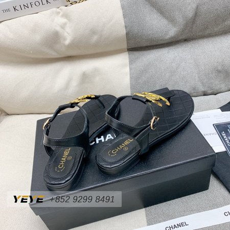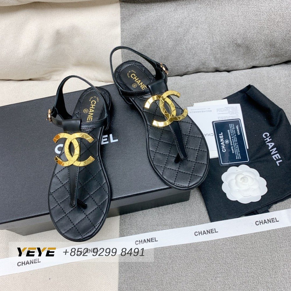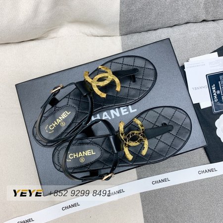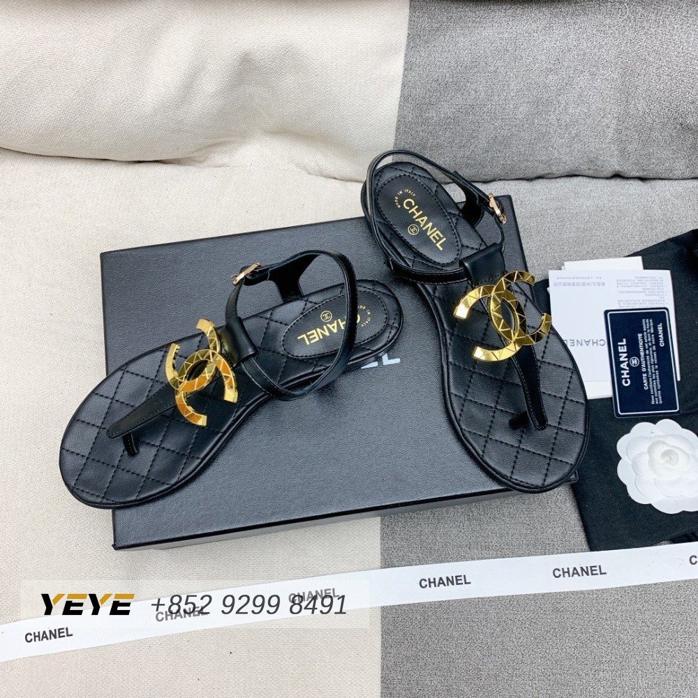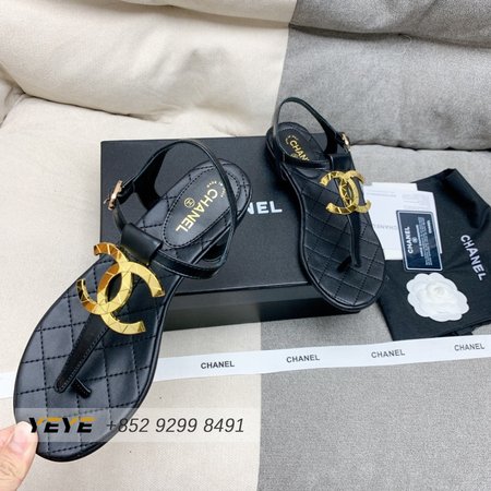 Chanel Gingham Open Toe Rubber Sole Casual Style Tweed