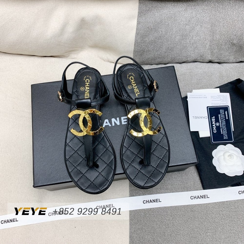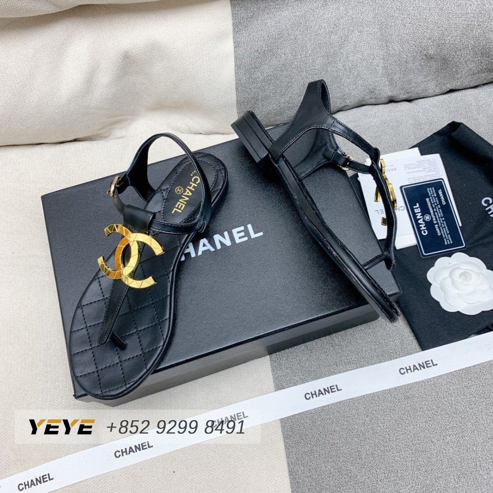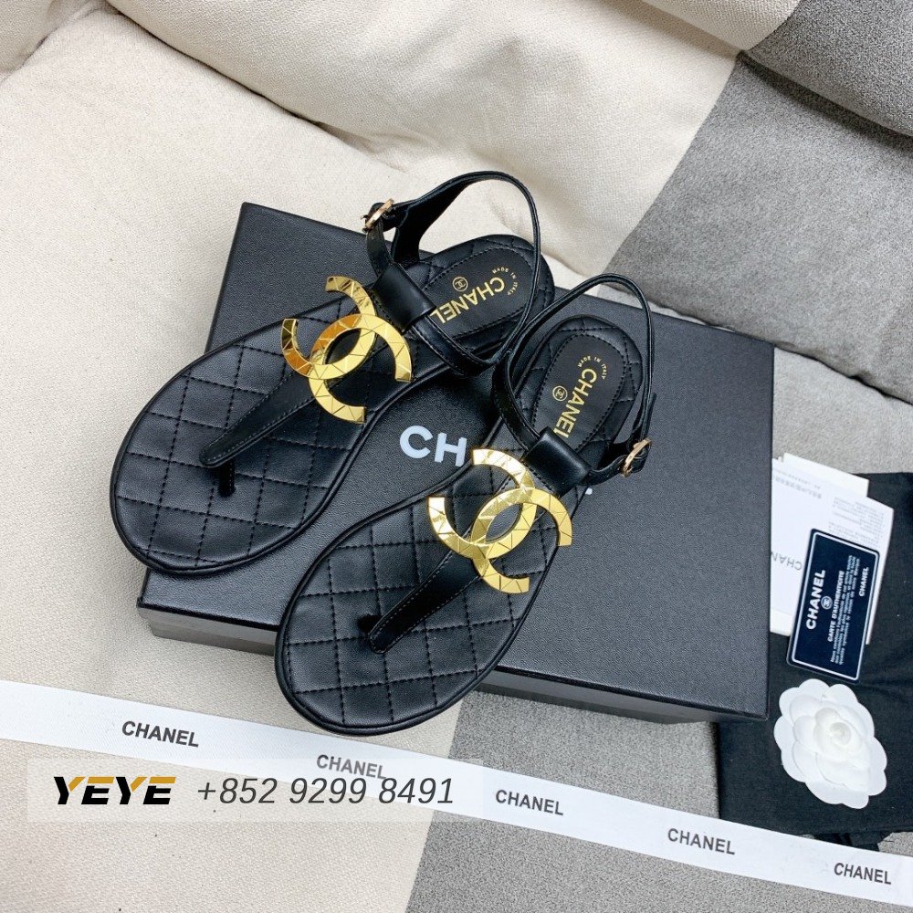 Chanel Gingham Open Toe Rubber Sole Casual Style Tweed