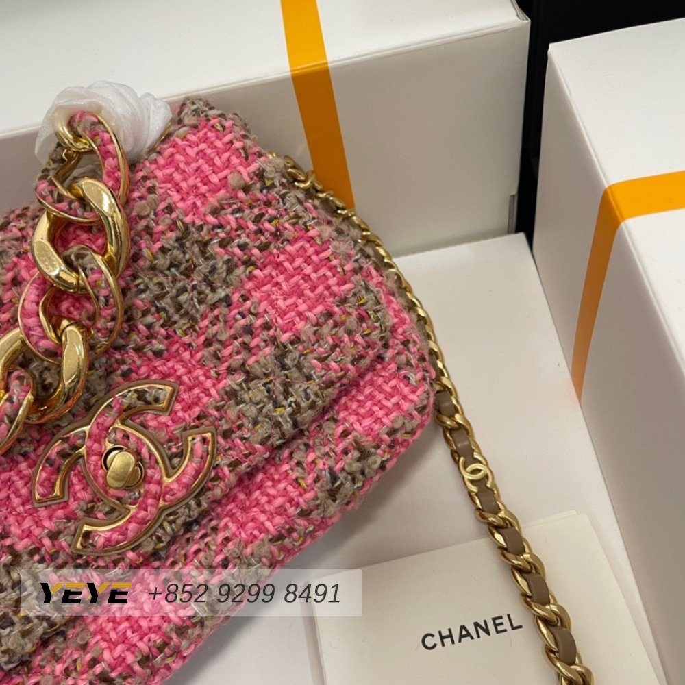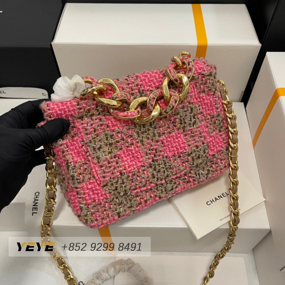 Chanel Small Elegant Chain Flap Bag Pink and Beige Tweed Gold Hardware