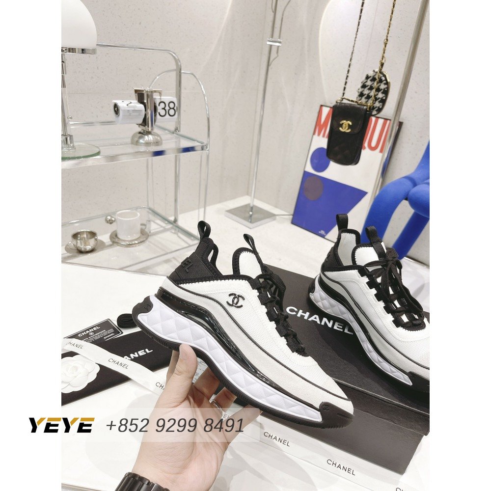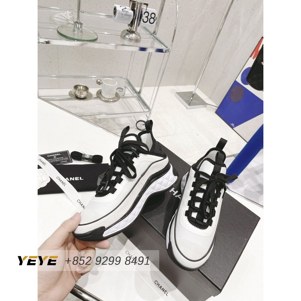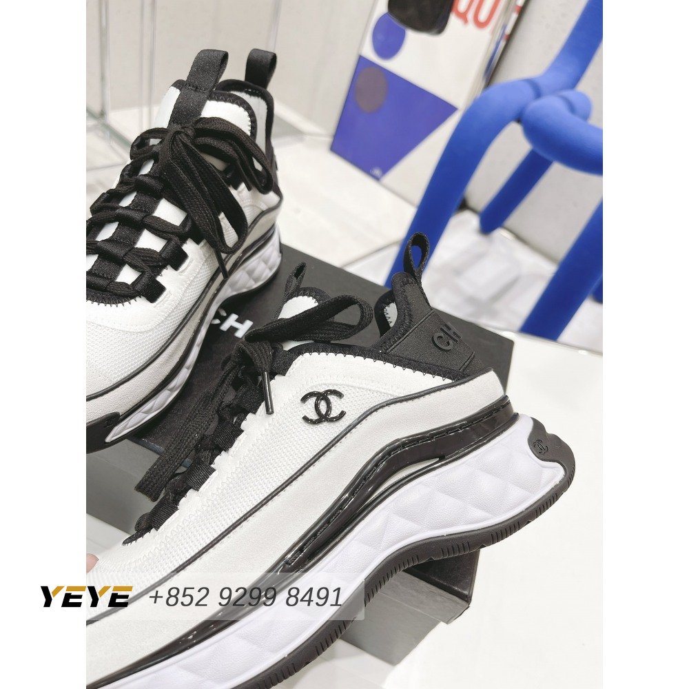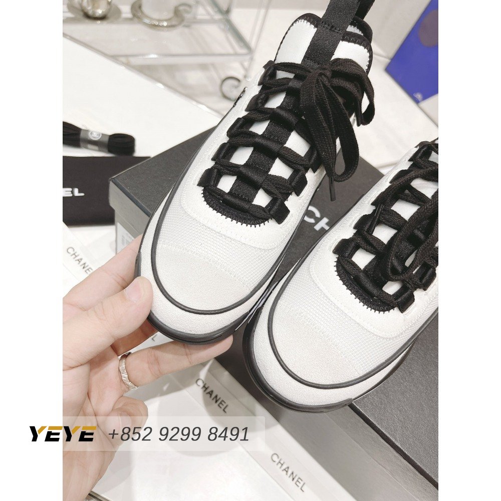 Chanel Sneakers Fabric & Suede Calfskin White/Black 35-40