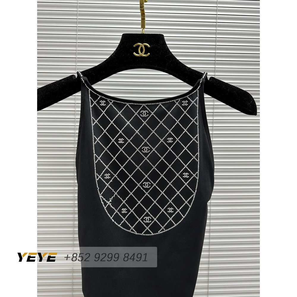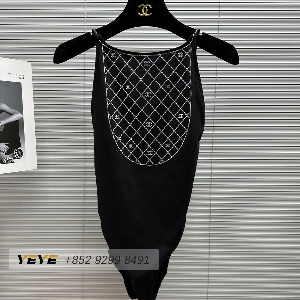 Chanel Swimsuit Stretch Jersey Strass Black Silver