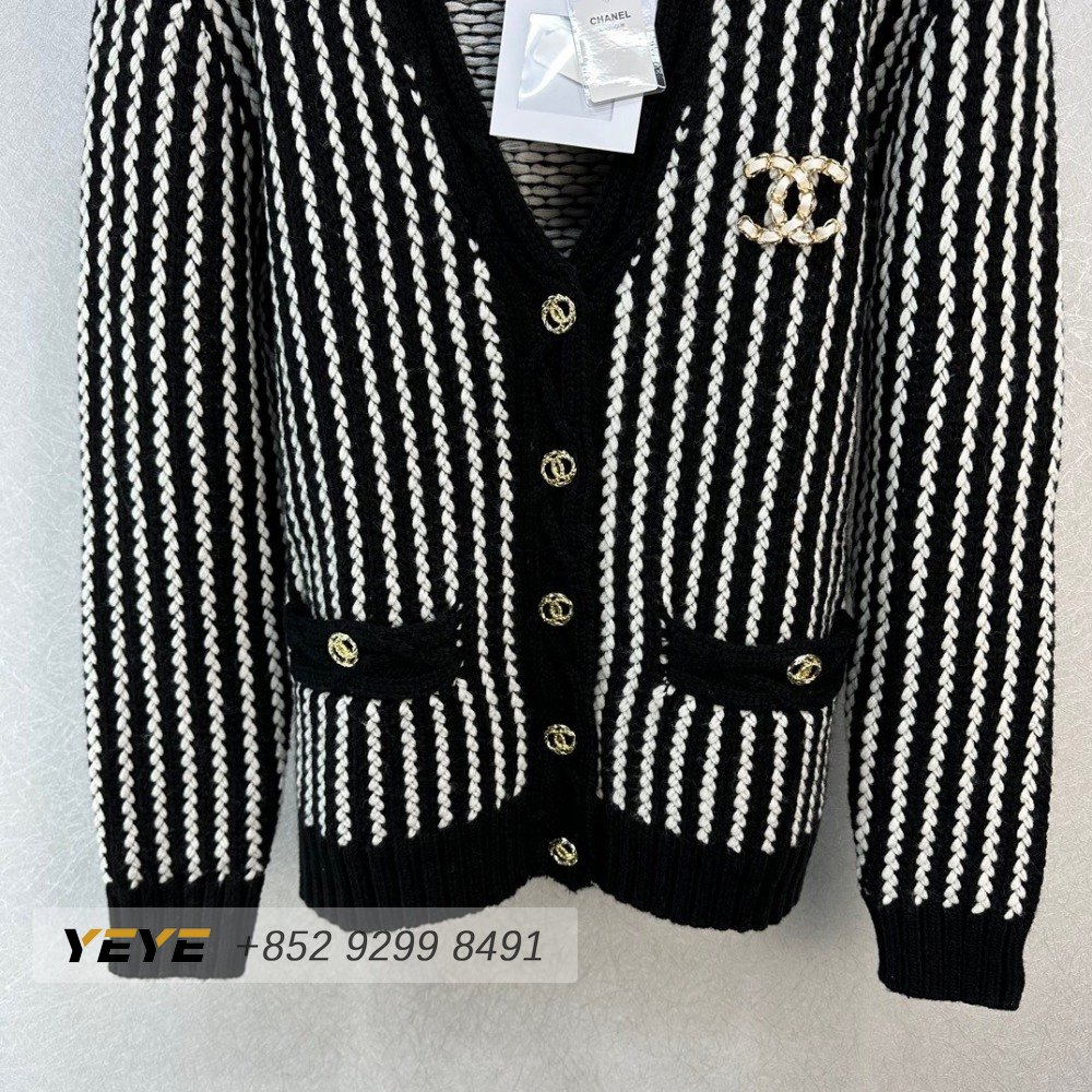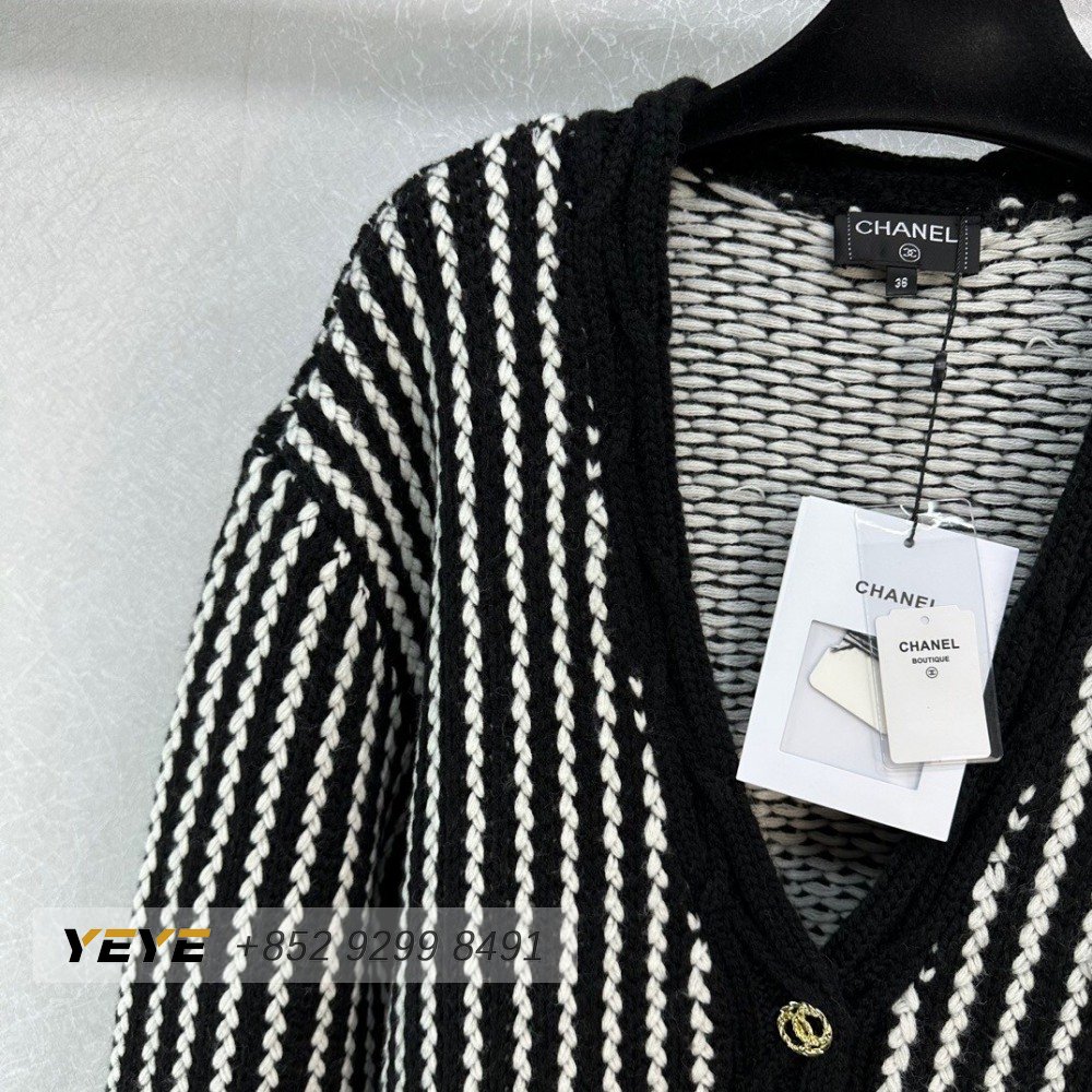 Chanel Color Contrast Rotator Knitted Long Sleeve