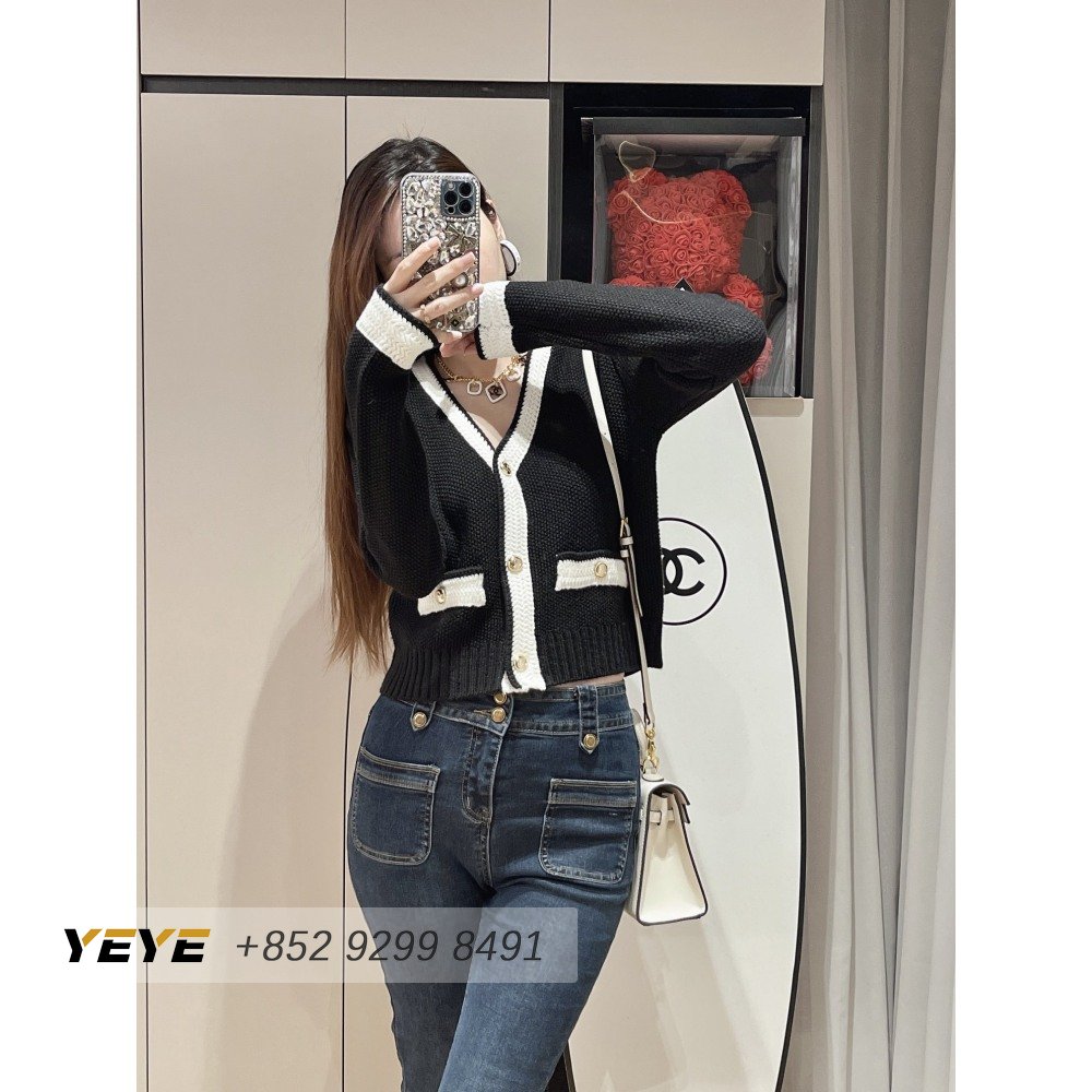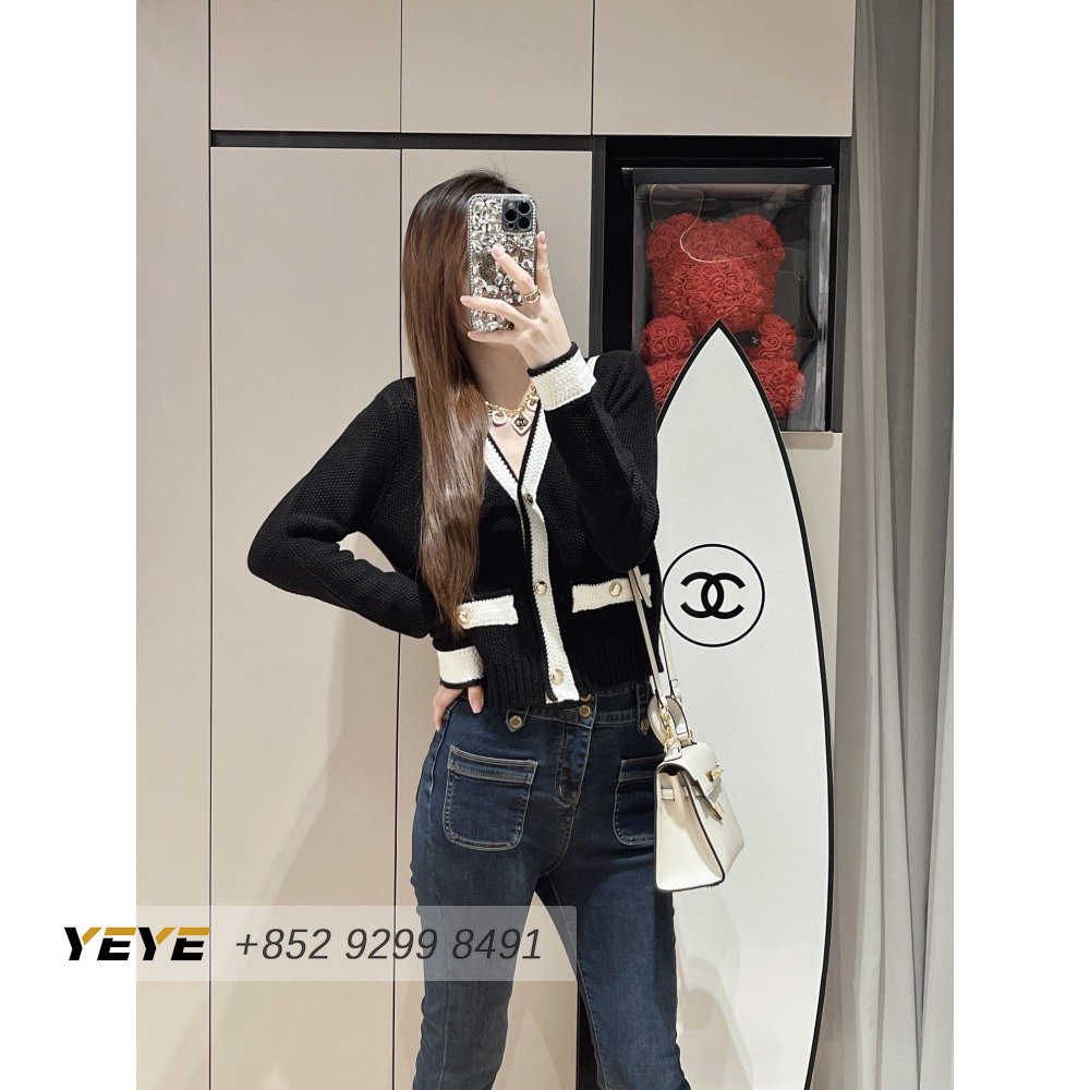 Chanel Color Contrast Rotator Knitted Long Sleeve