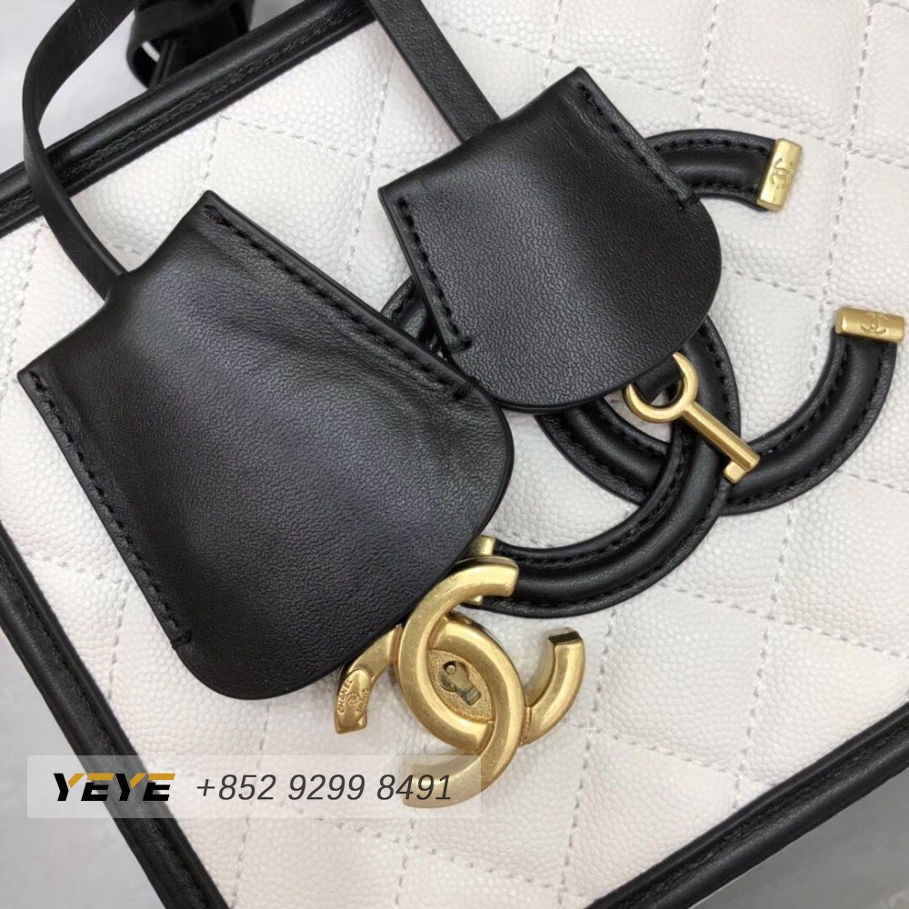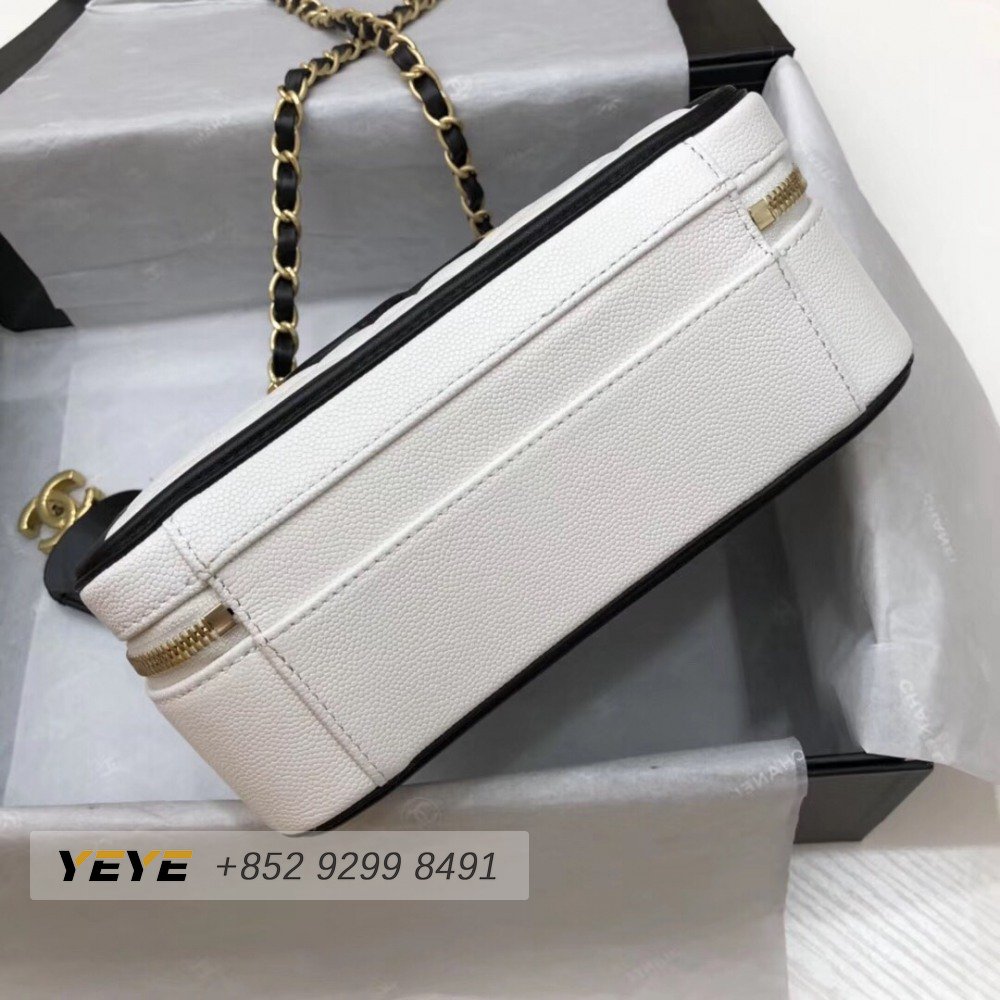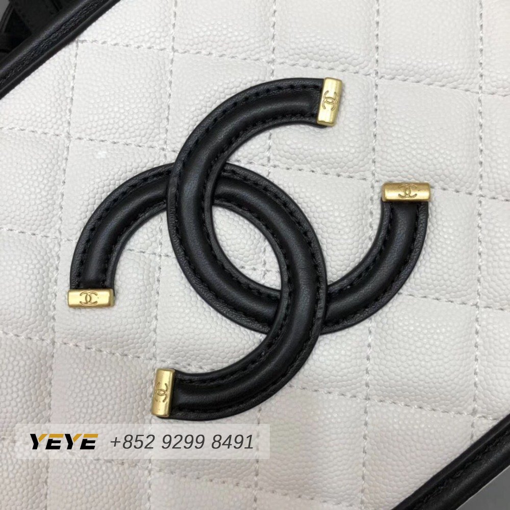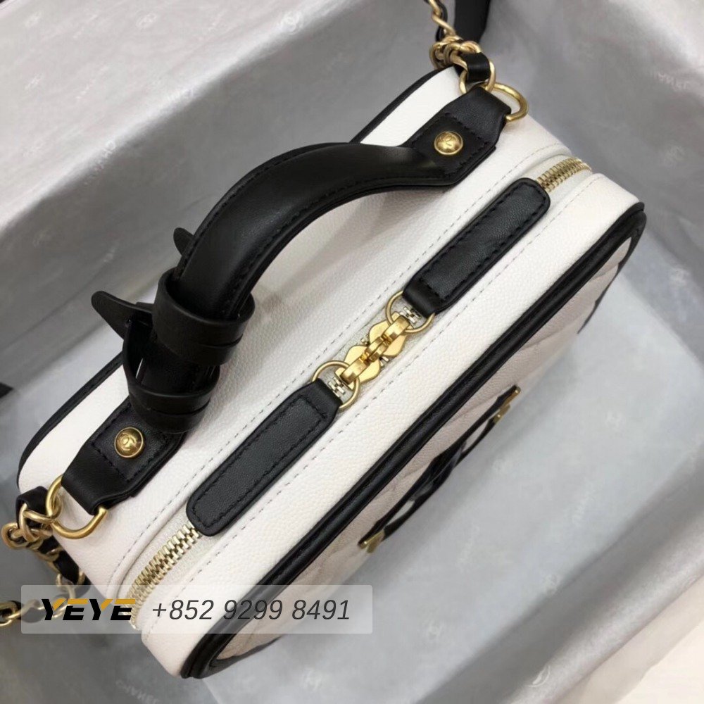 Chanel White & Black Quilted Caviar Leather
