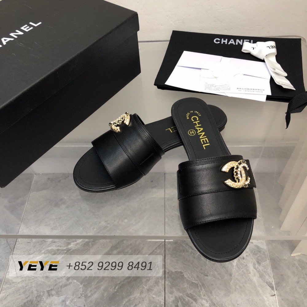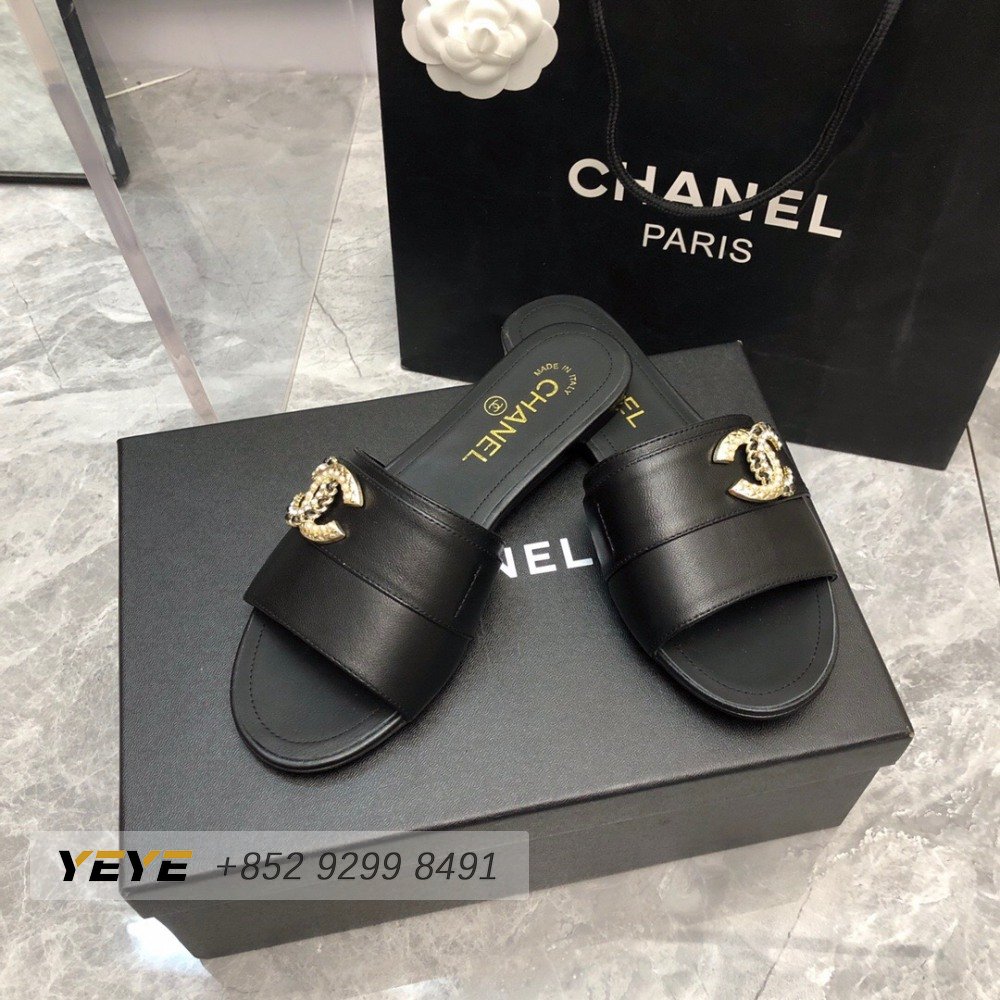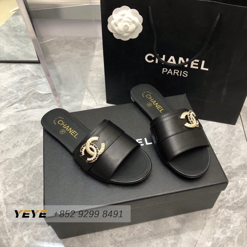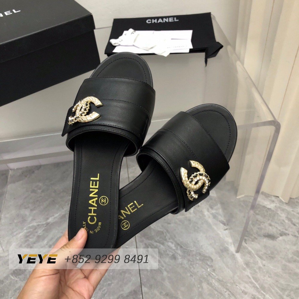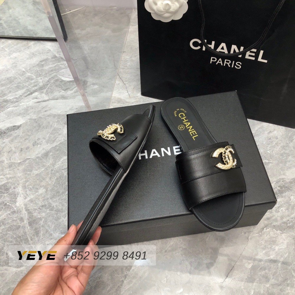 Chanel Women's Cross Band Slippers Fuzzy Slippers