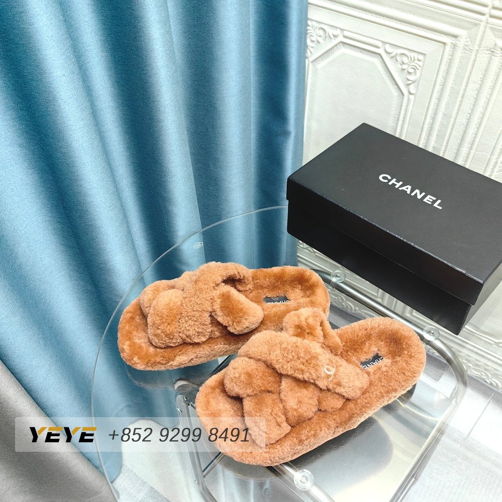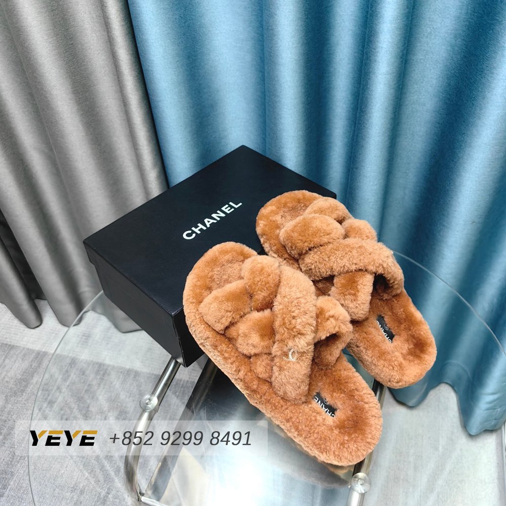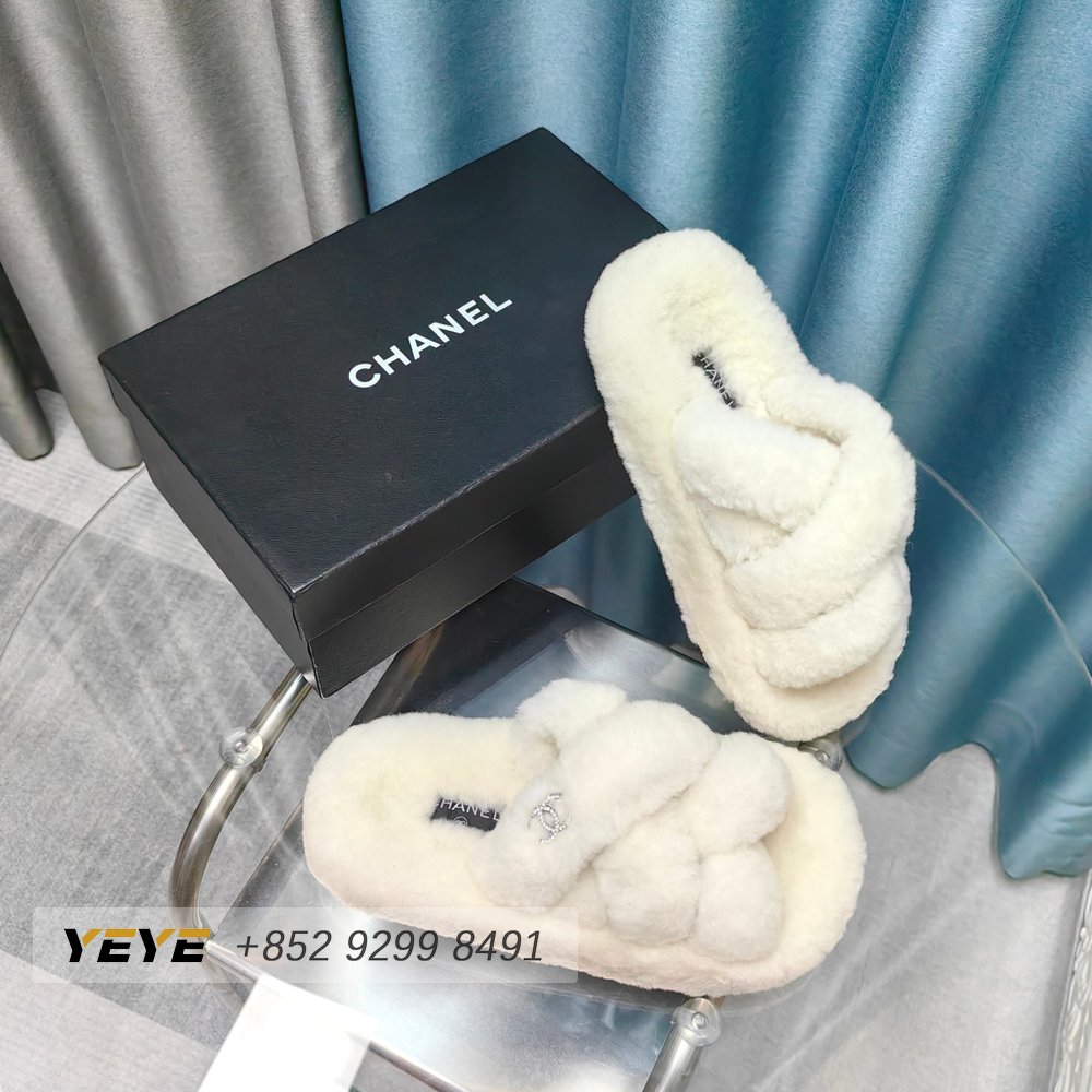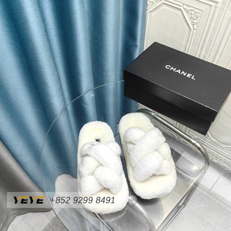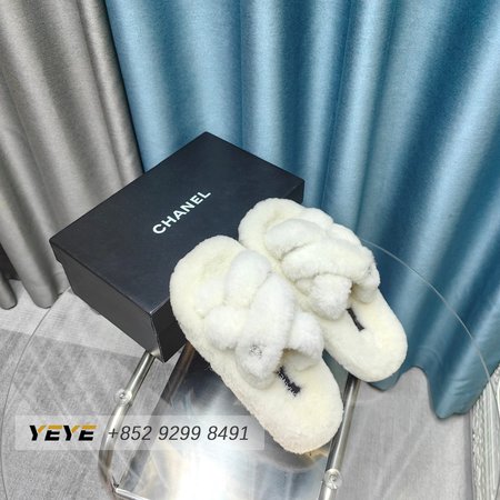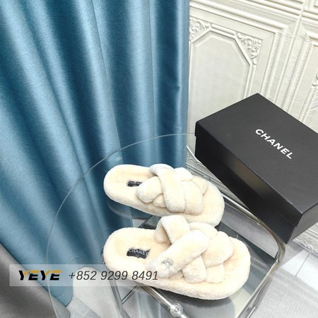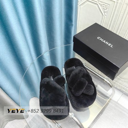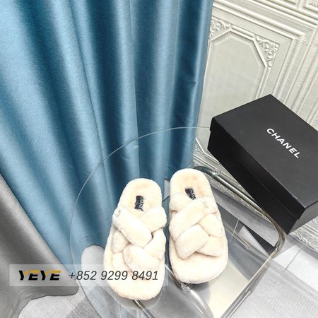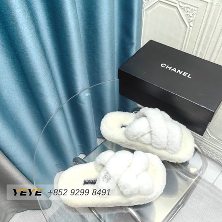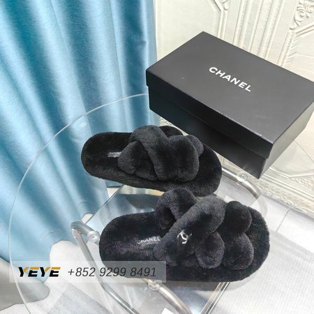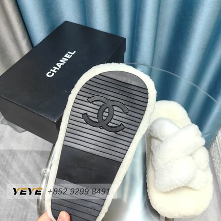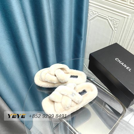 Chanel Women's Cross Band Slippers Fuzzy Slippers