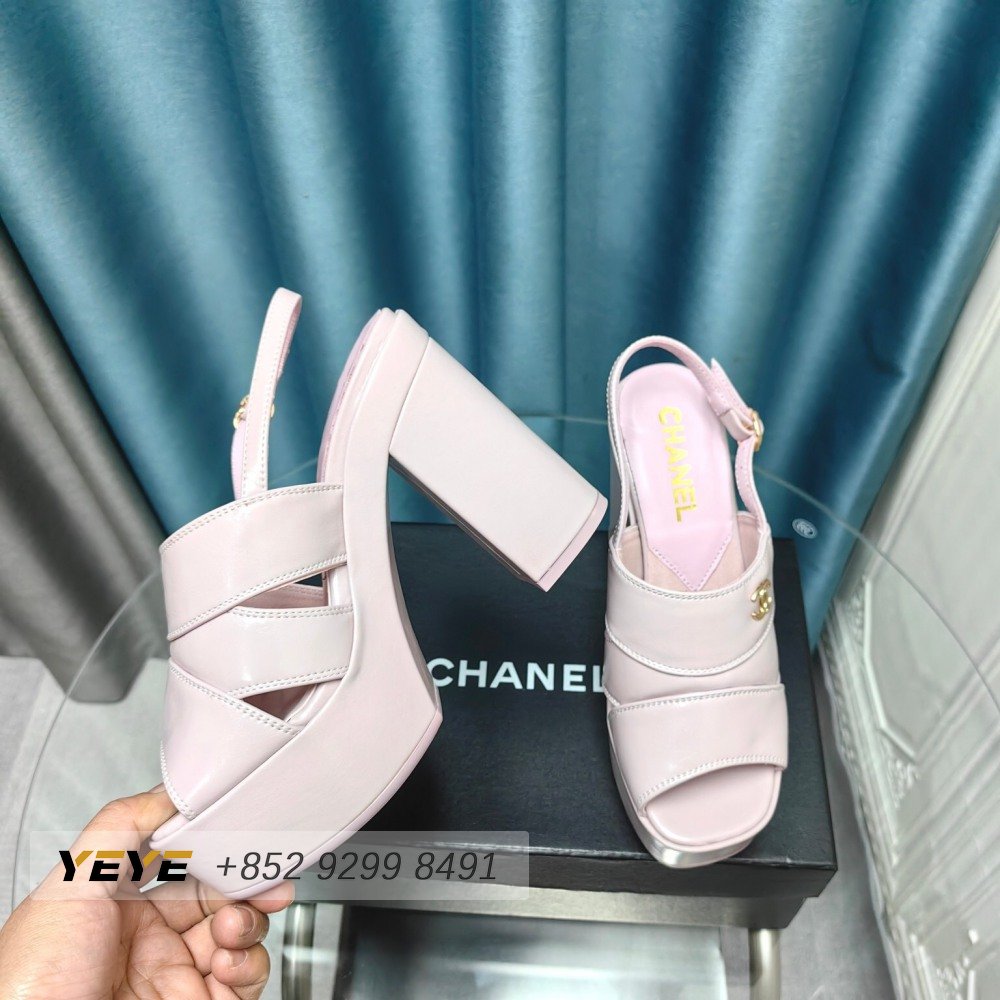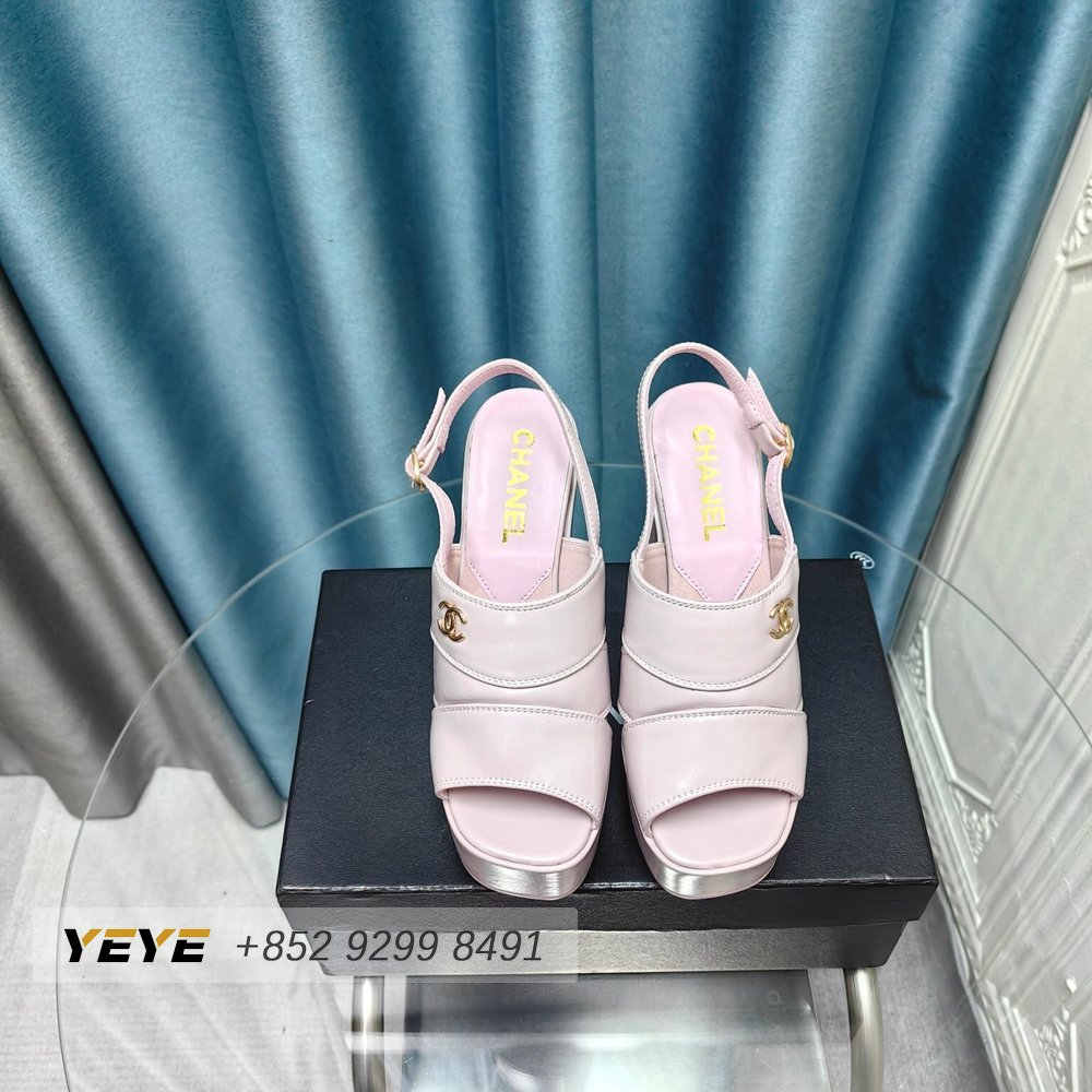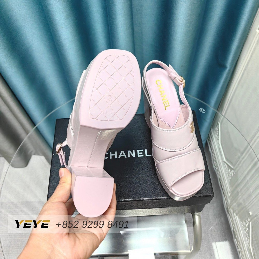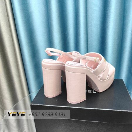 Chanel Gingham Open Toe Rubber Sole Casual Style Tweed