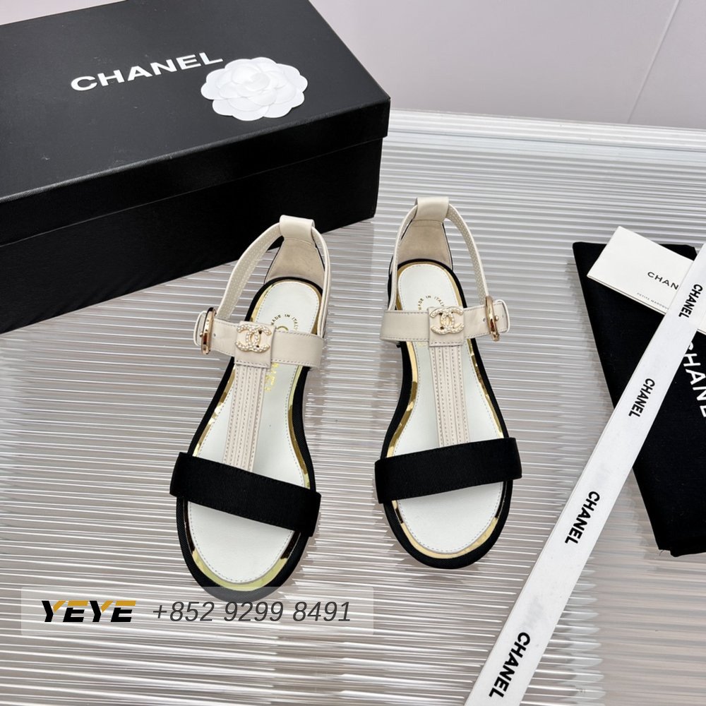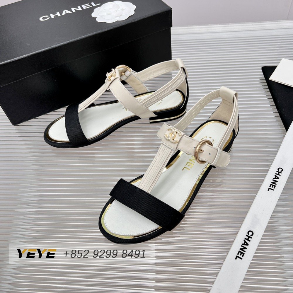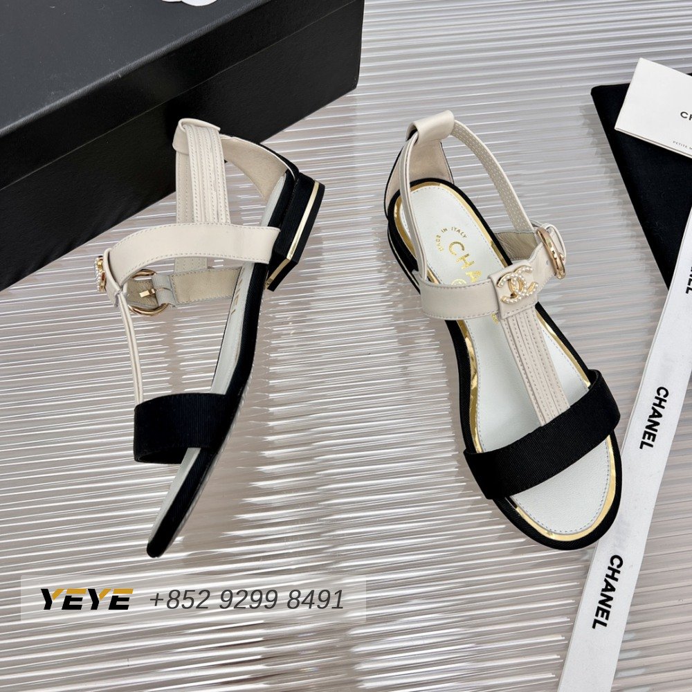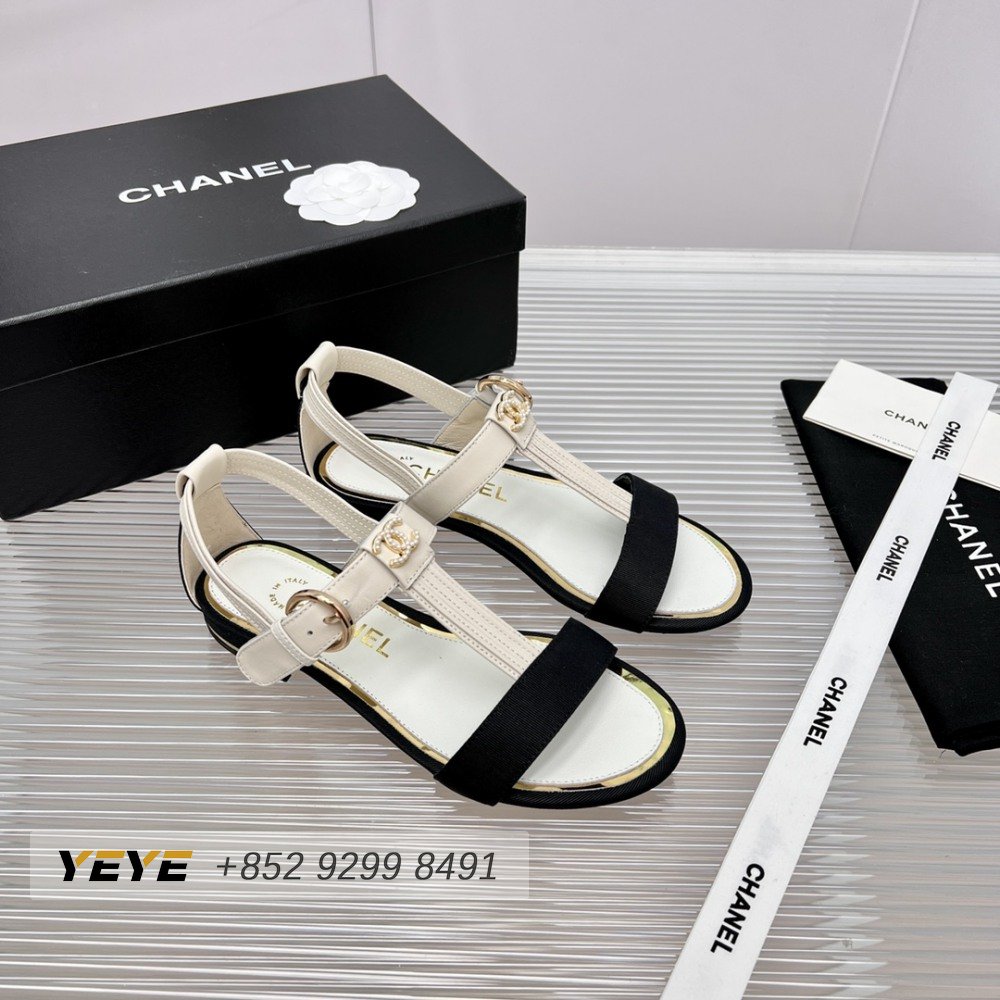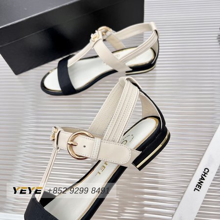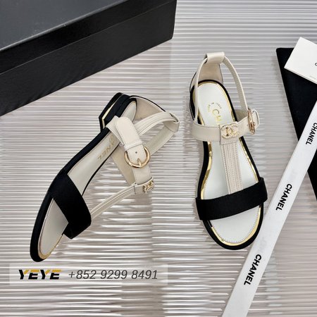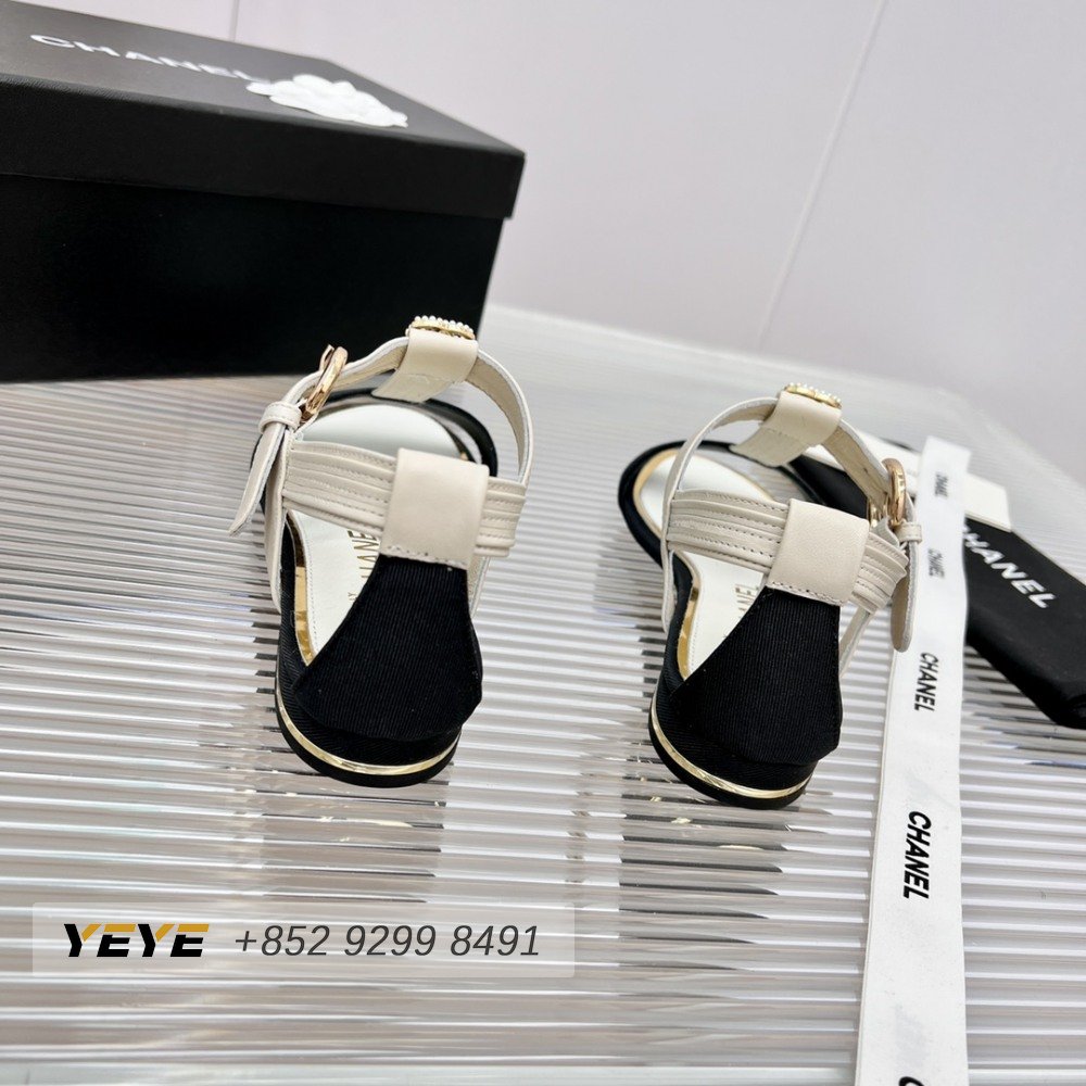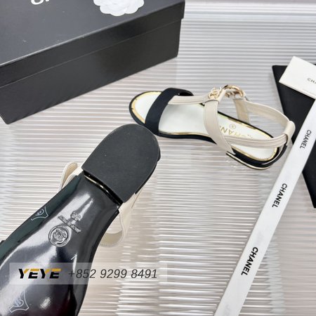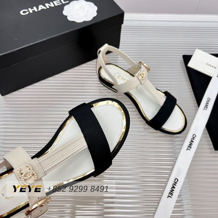 Chanel Gingham Open Toe Rubber Sole Casual Style Tweed