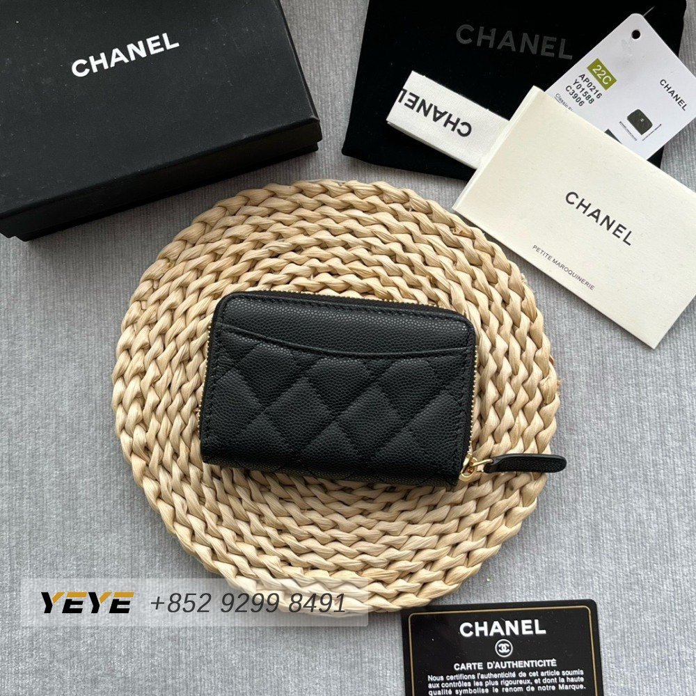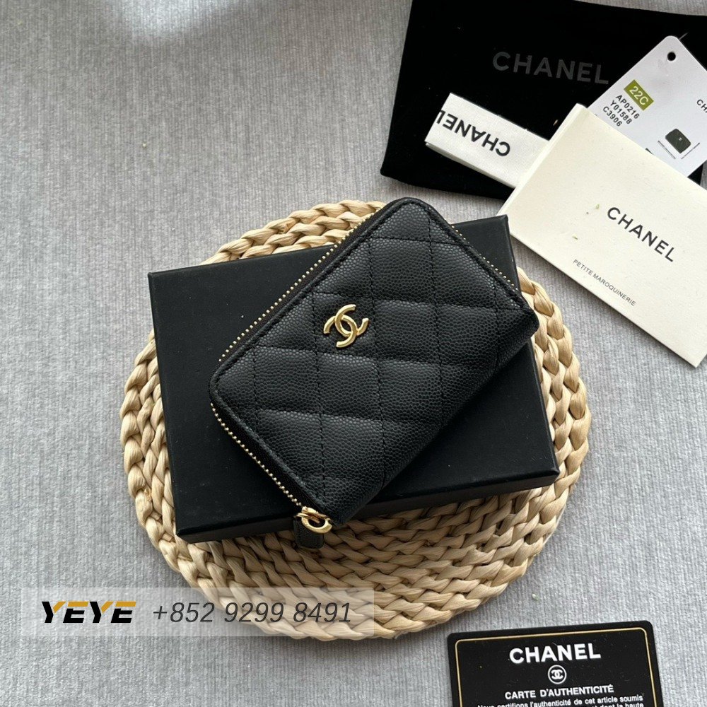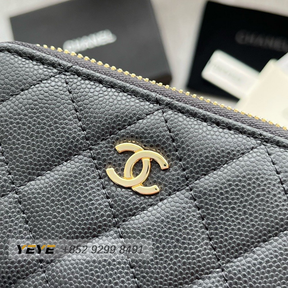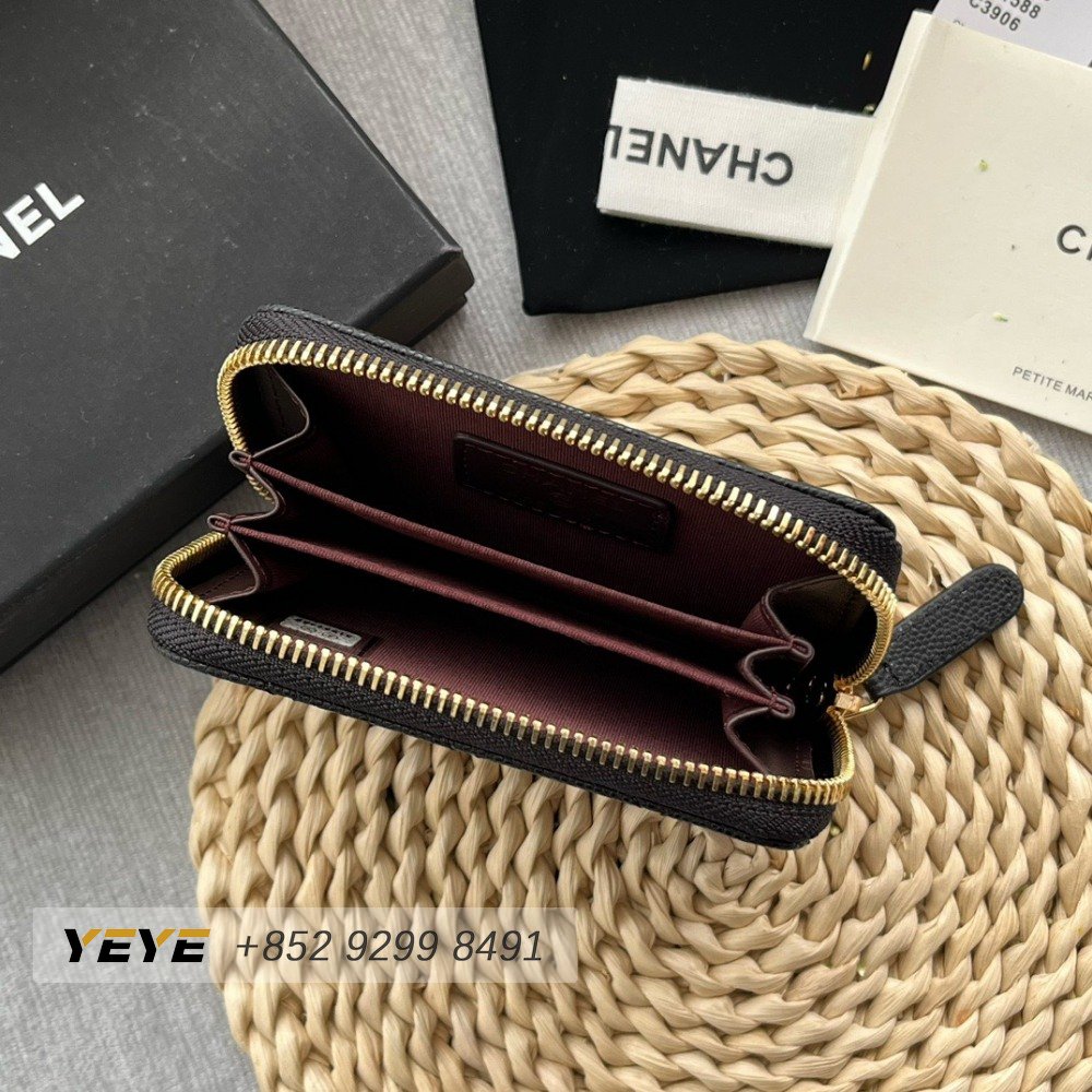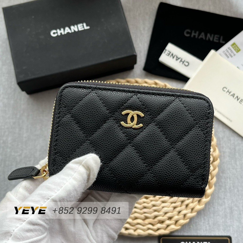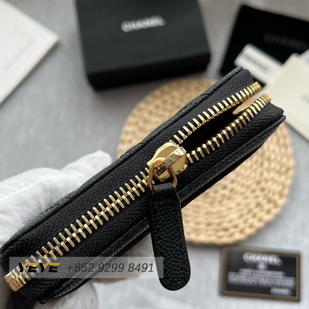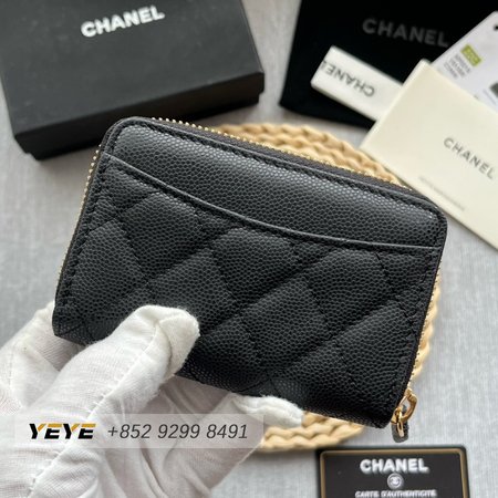 Chanel Zip Coin Purse Quilted Caviar Gold-tone Black