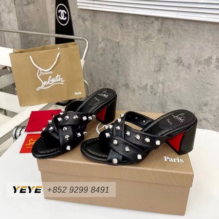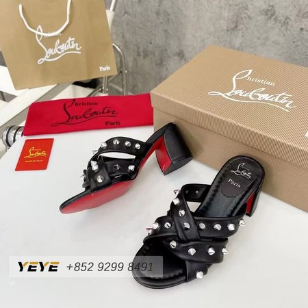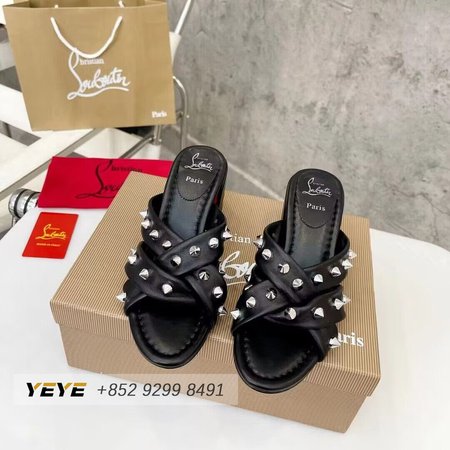 Christian Louboutin Navy Coolito Flat Black Velvet Backless Slide