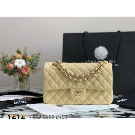 Classic Handbag Cloudy Pearly Goatskin & Gold-Tone Metal Light Yellow