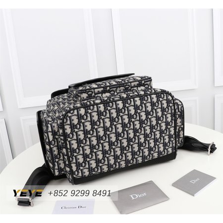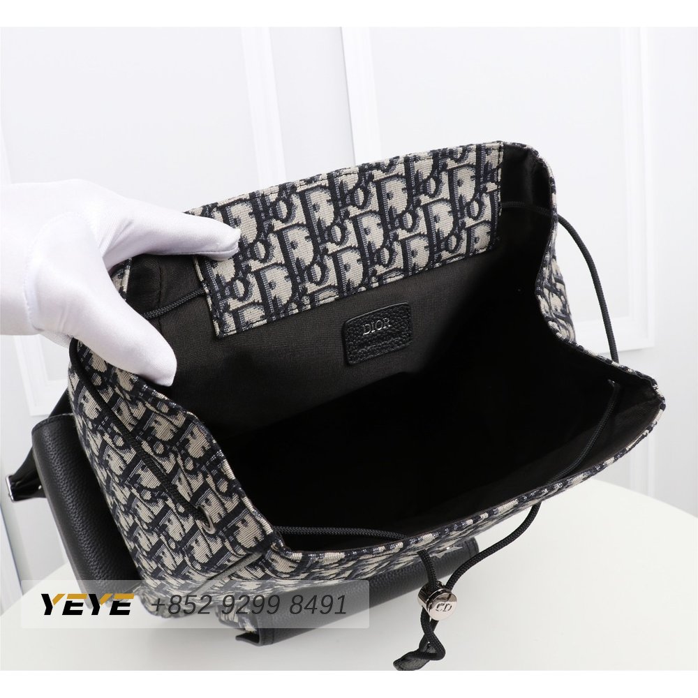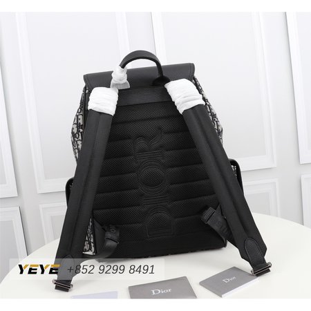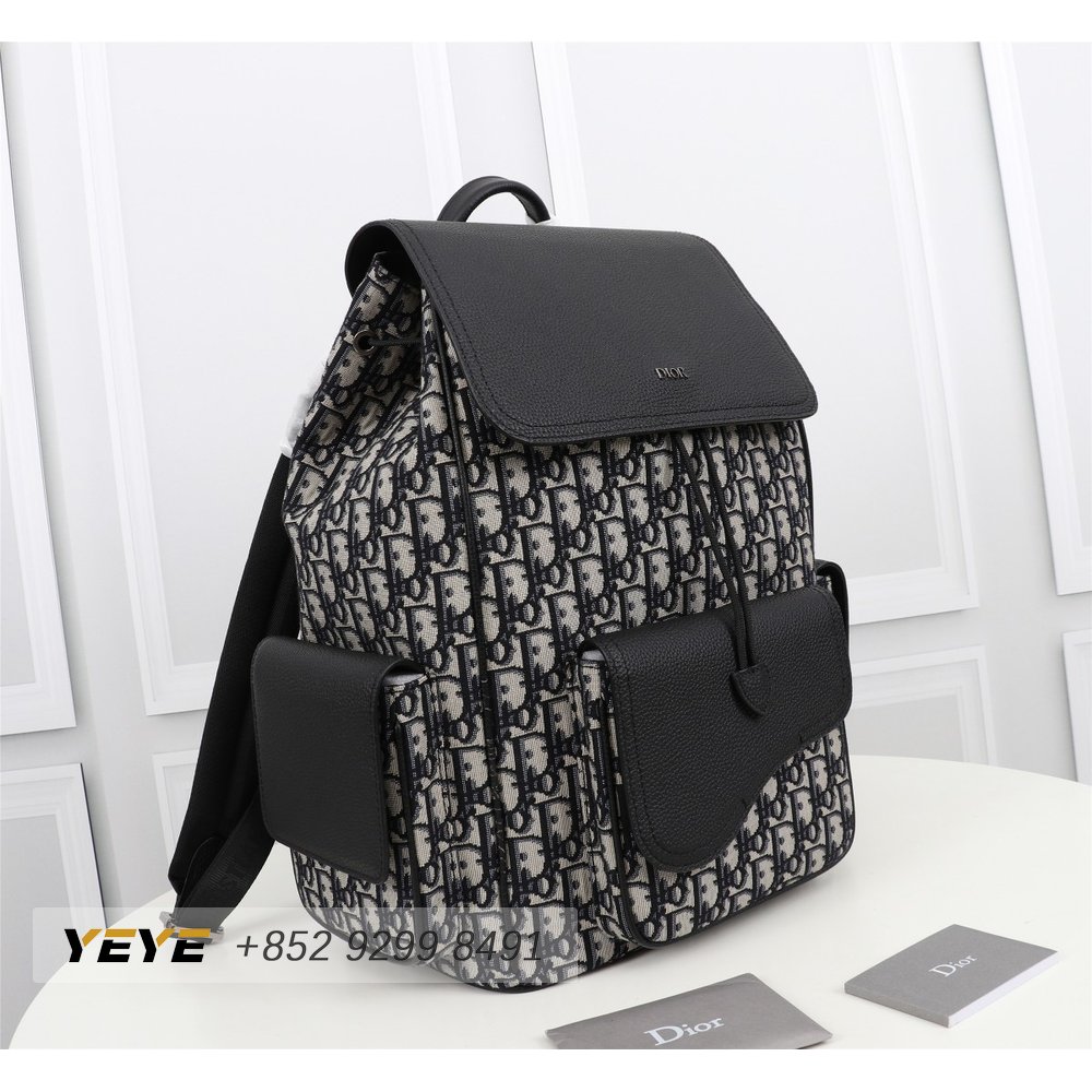 Dior Saddle Backpack Beige And Black Oblique Print And Black Grained Calfskin