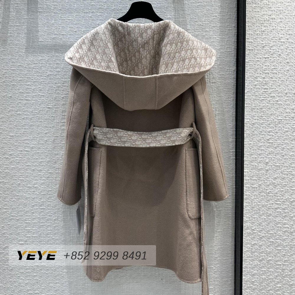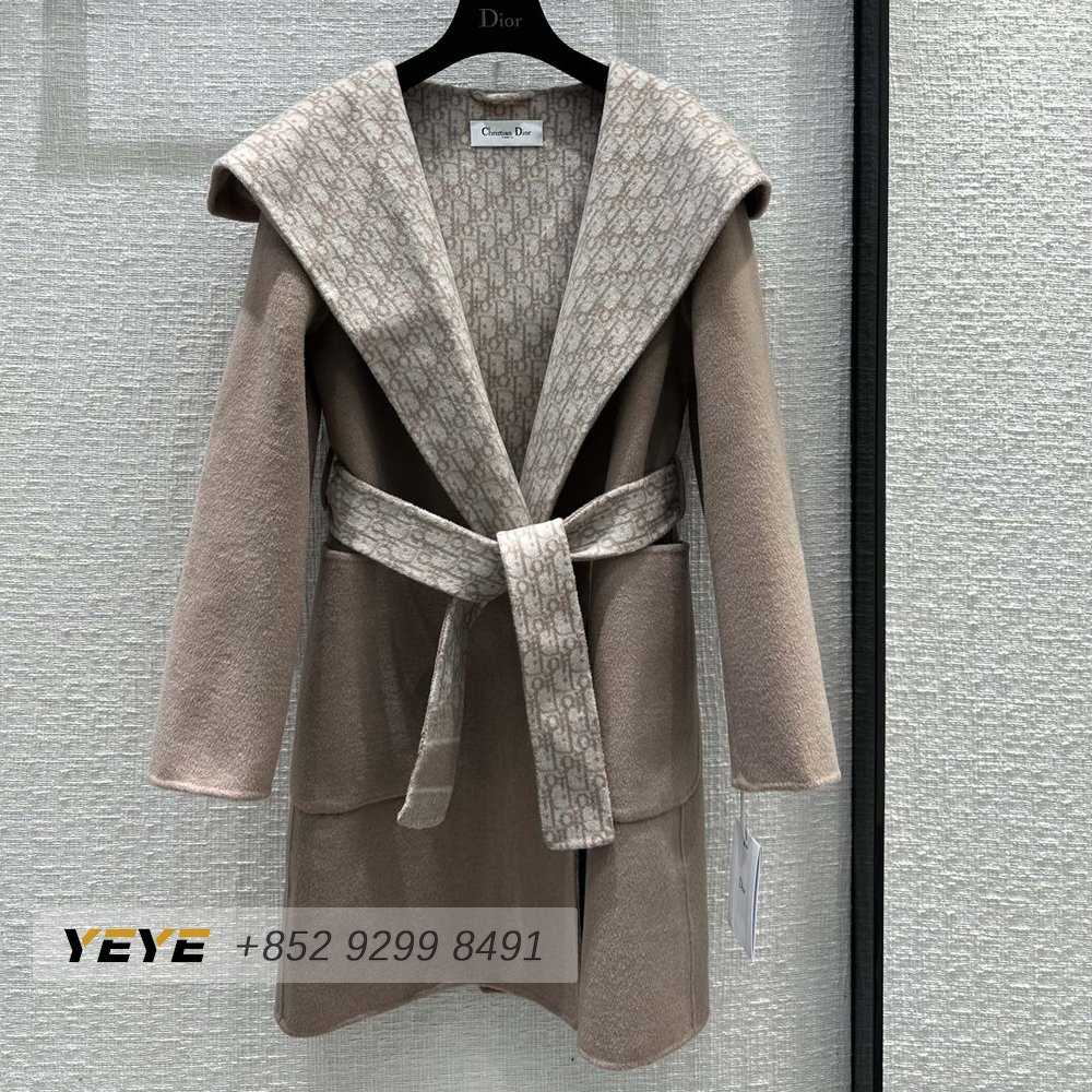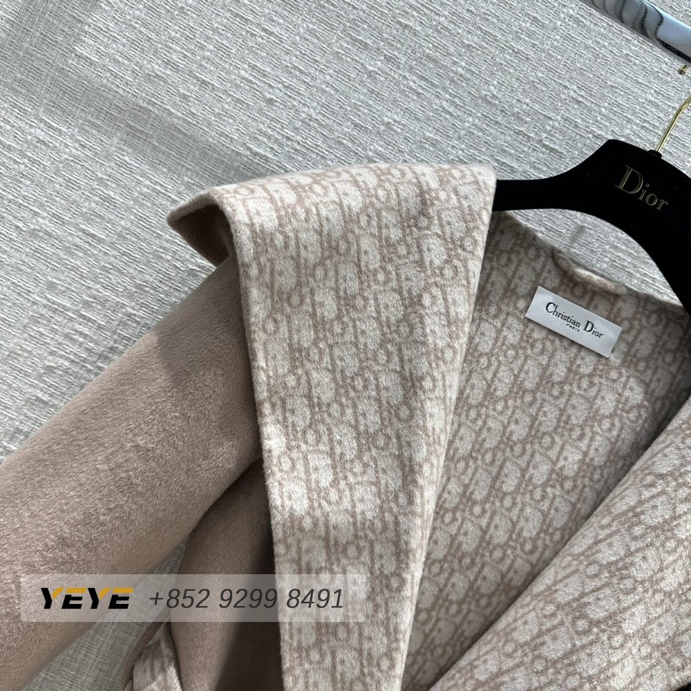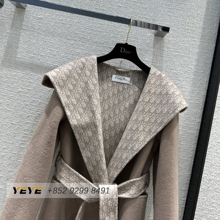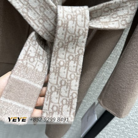 Dior Logo Print Tie-Waist Lapel Long-Sleeved Suede Trench Coat Jacket