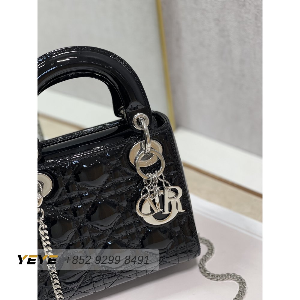 Small Lady Dior Bag Black Patent Cannage Calfskin