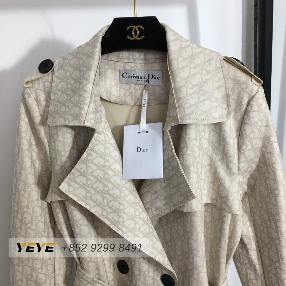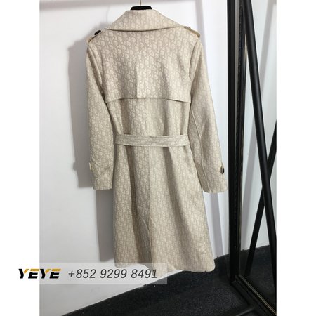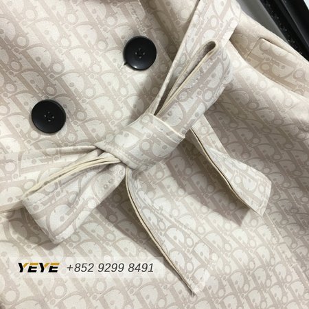 Dior Logo Print Tie-Waist Lapel Long-Sleeved Suede Trench Coat Jacket
