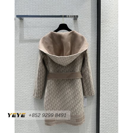 Dior Logo Reversible Wool Mid-Length Hooded Coat