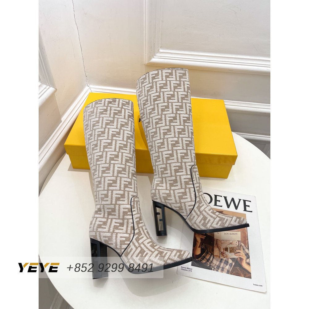 Fendi Cut High-Heeled FF Chenille Boots 35-39