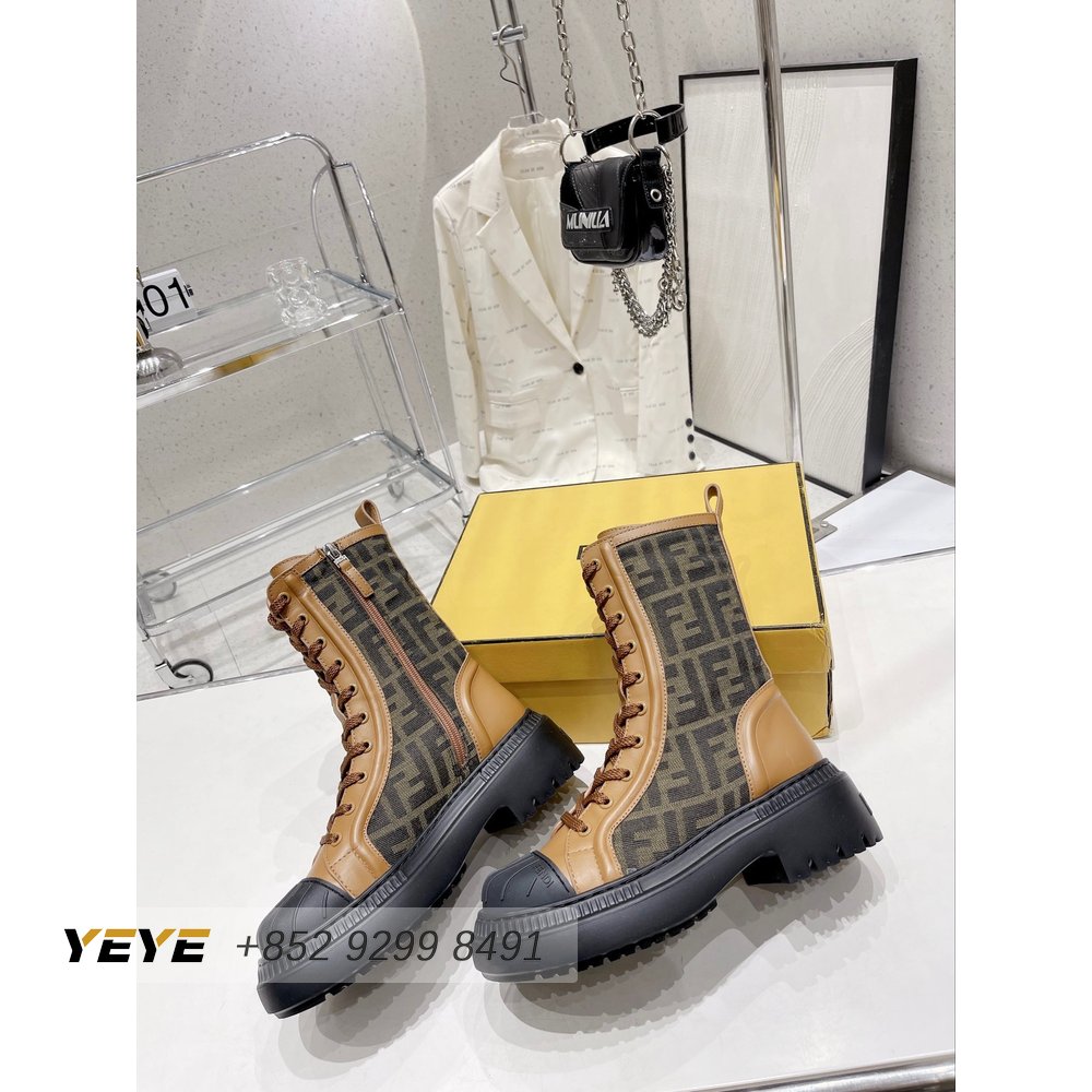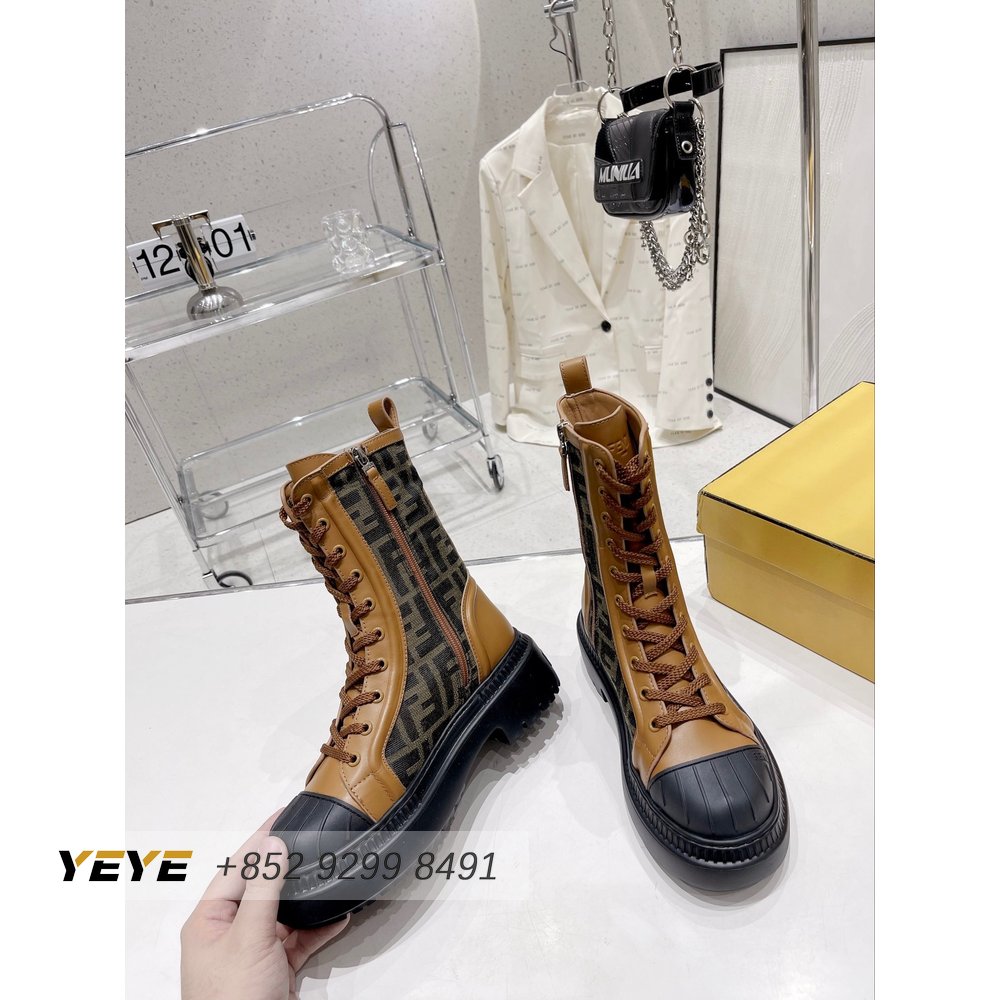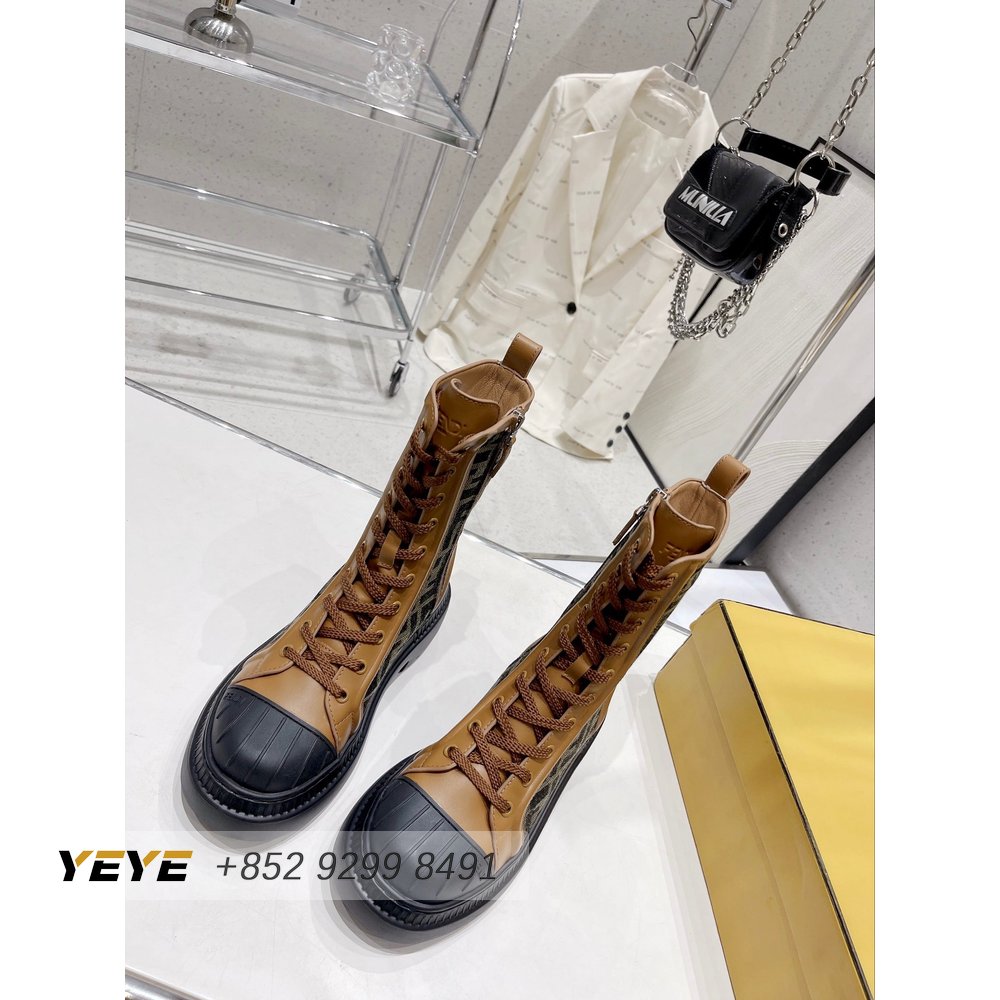 Fendi Domino Beige Leather Biker Boots 35-40