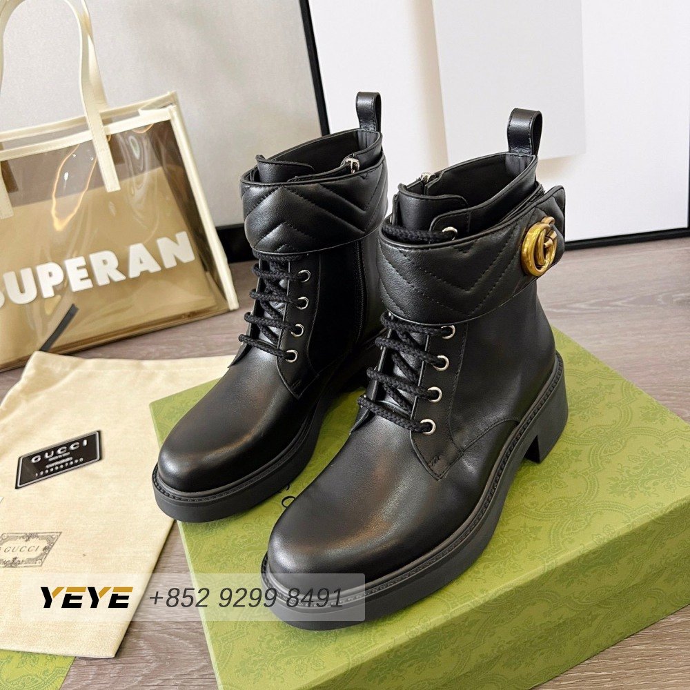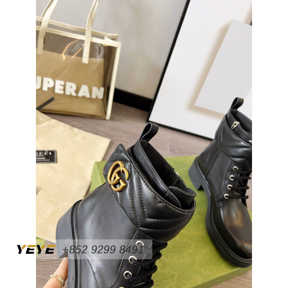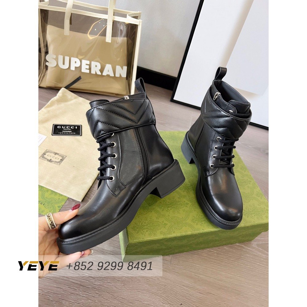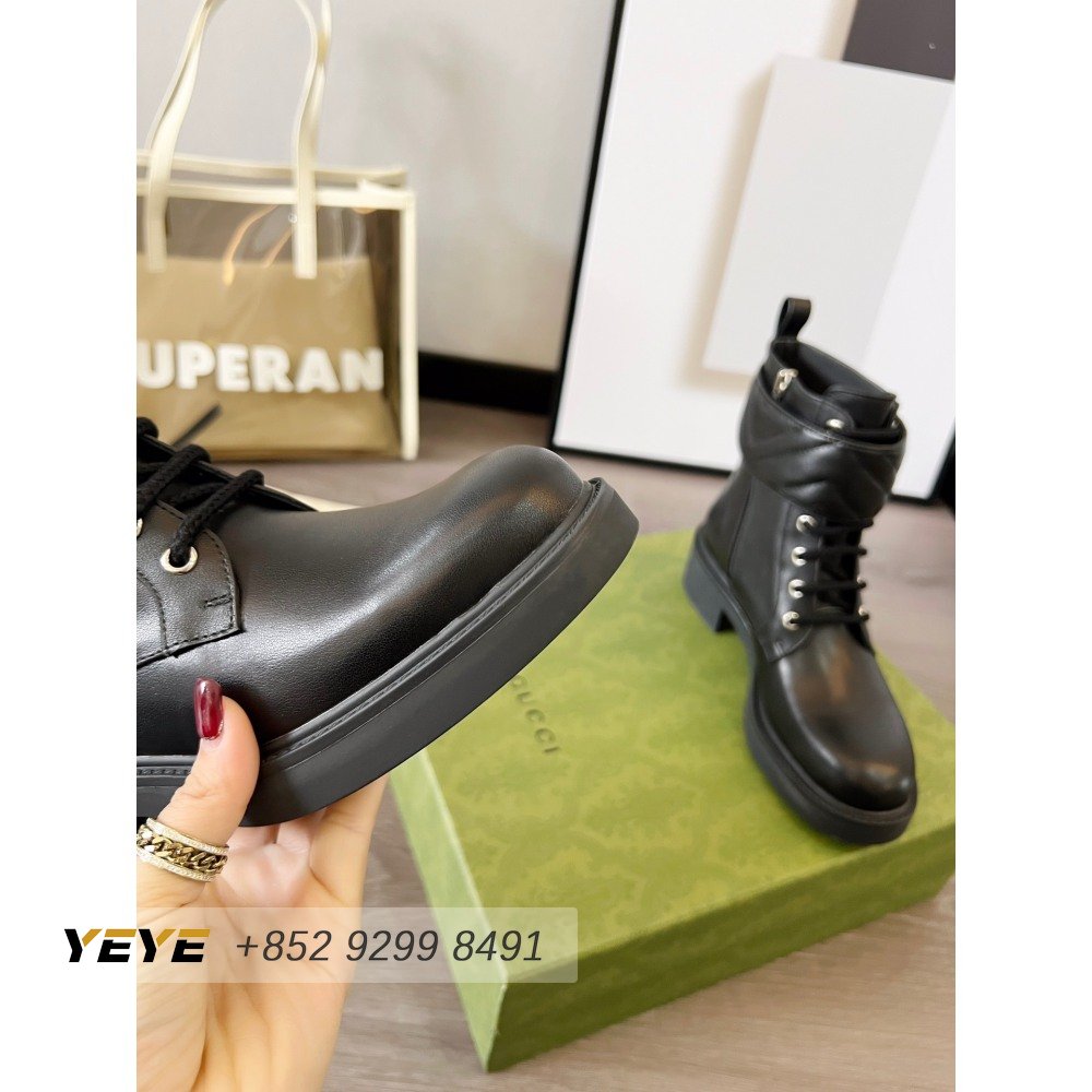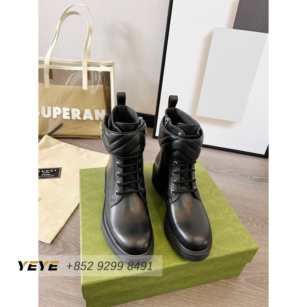 Gucci GG Matelasse Lace-Up Boot Black Leather 35-42