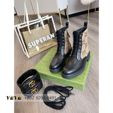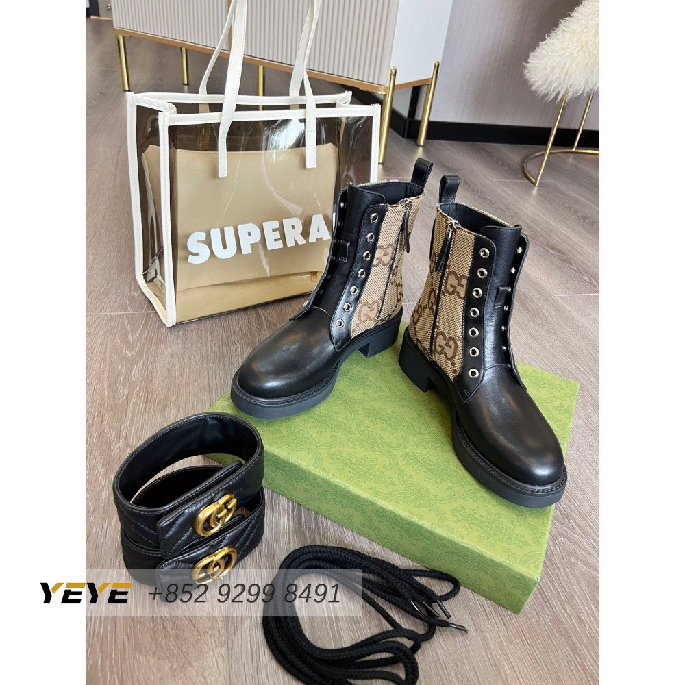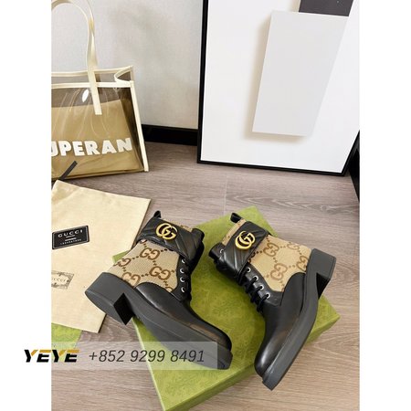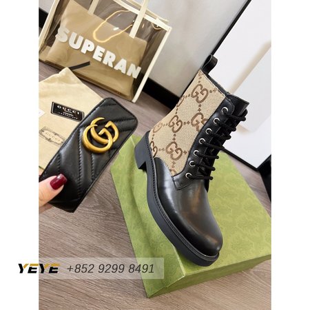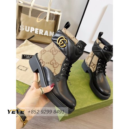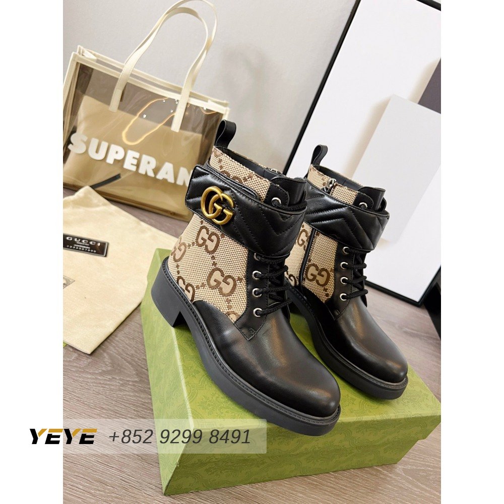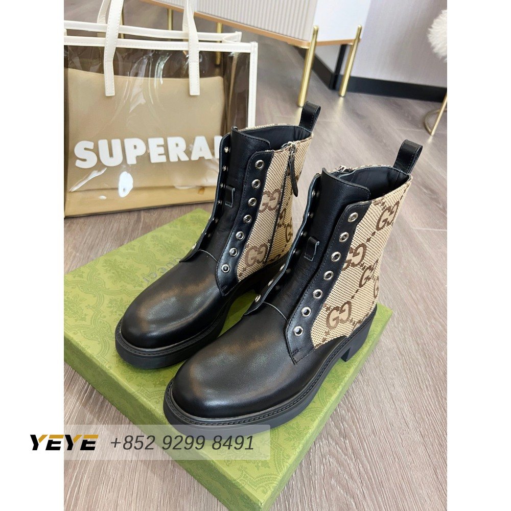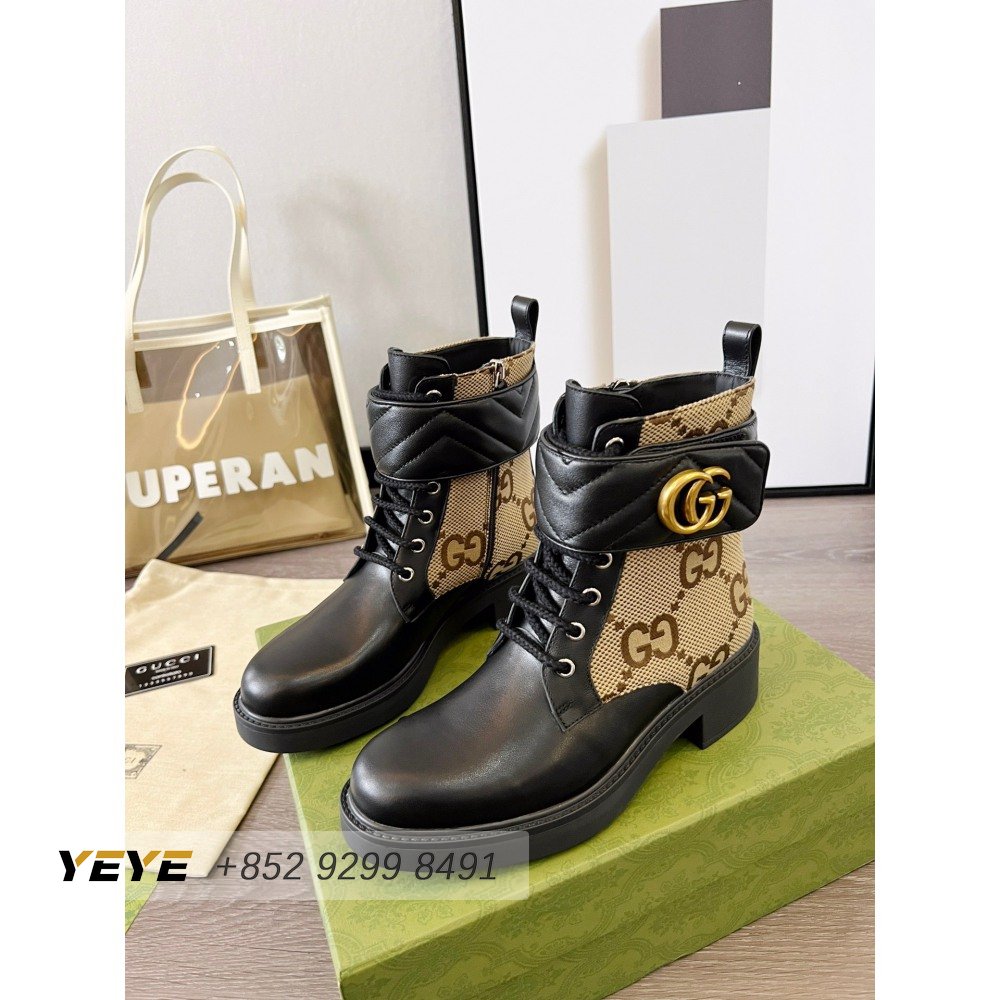 Gucci GG Matelasse Lace-Up Boot Black Leather 35-42